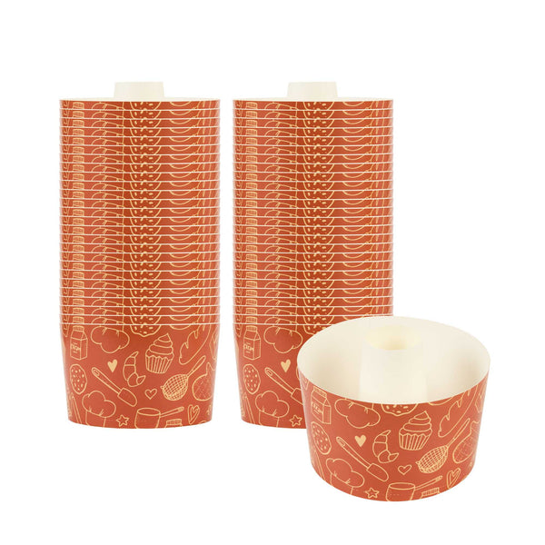 Achieve flawless bundt cakes with oven-safe design. The Panificio Greaseproof 5.8" Brown Bundt Cake Pan, crafted from sturdy paper, measures 5.8 inches in length, width, and 3.8 inches in height, providing a reliable paper baking pan for professional kitchens. Its greaseproof lining ensures your cakes maintain a pristine appearance, making it ideal for any bakery focused on presentation. Designed to handle temperature extremes, the bundt cake pan is freezer-safe, allowing pastry chefs to conveniently store desserts without compromising quality. This disposable cake pan simplifies cleanup and disposal, which is essential for high-volume bakeries looking to streamline operations. Perfect for individual portions, this pan supports seamless transitions from freezer to oven, enhancing efficiency. Boost your baking productivity with this versatile solution for both hot and cold food applications. Each order includes 100 Panificio Greaseproof 5.8" Brown Bundt Cake Pans.