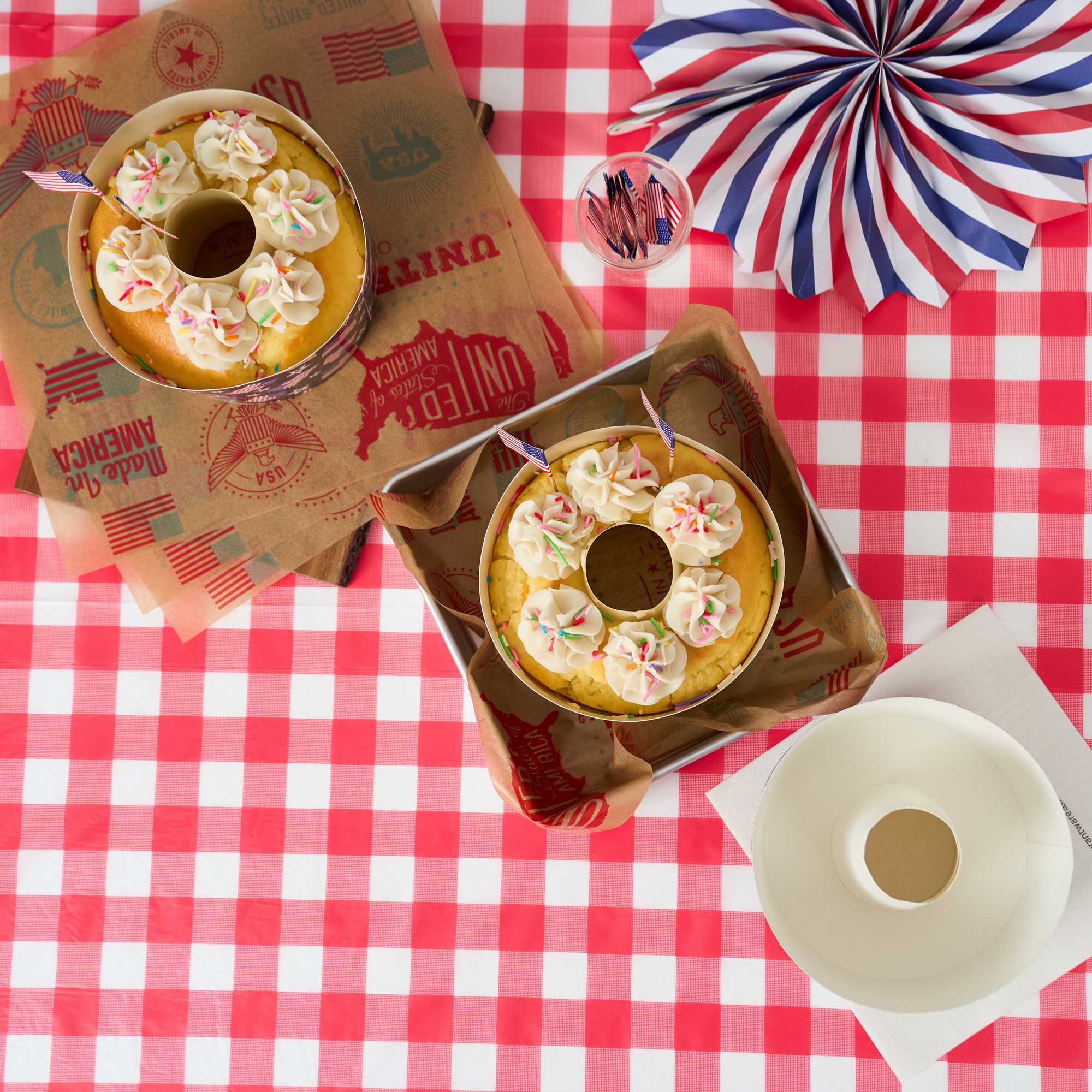 53 OZ PAPER BAKING RING MOLD - AMERICAN FLAG, GREASEPROOF