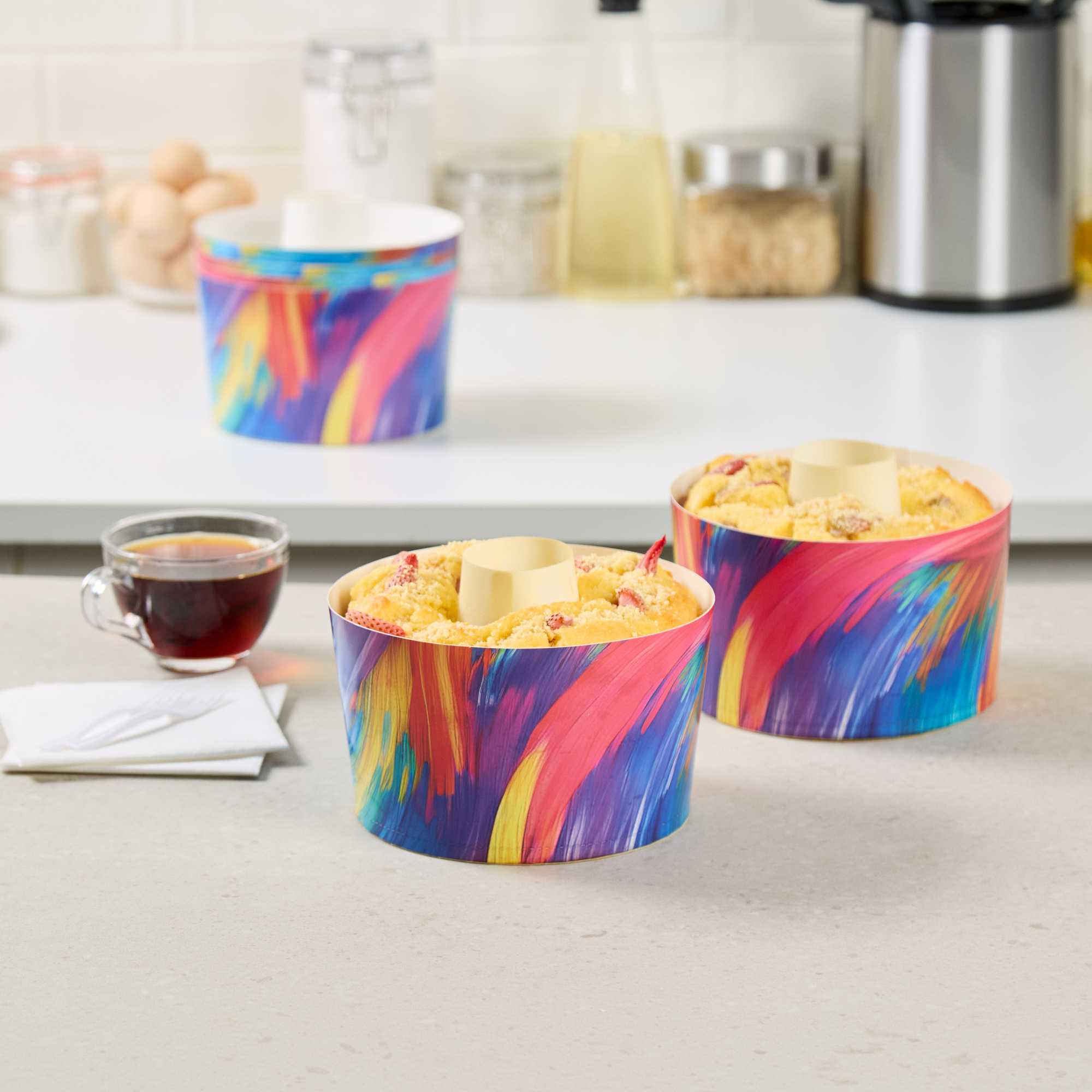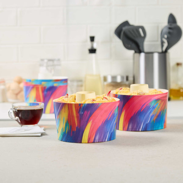 53 OZ PAPER BAKING RING MOLD - COLORFUL ABSTRACT WAVES, GREASEPROOF
