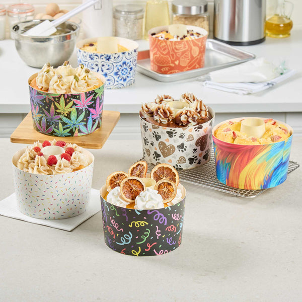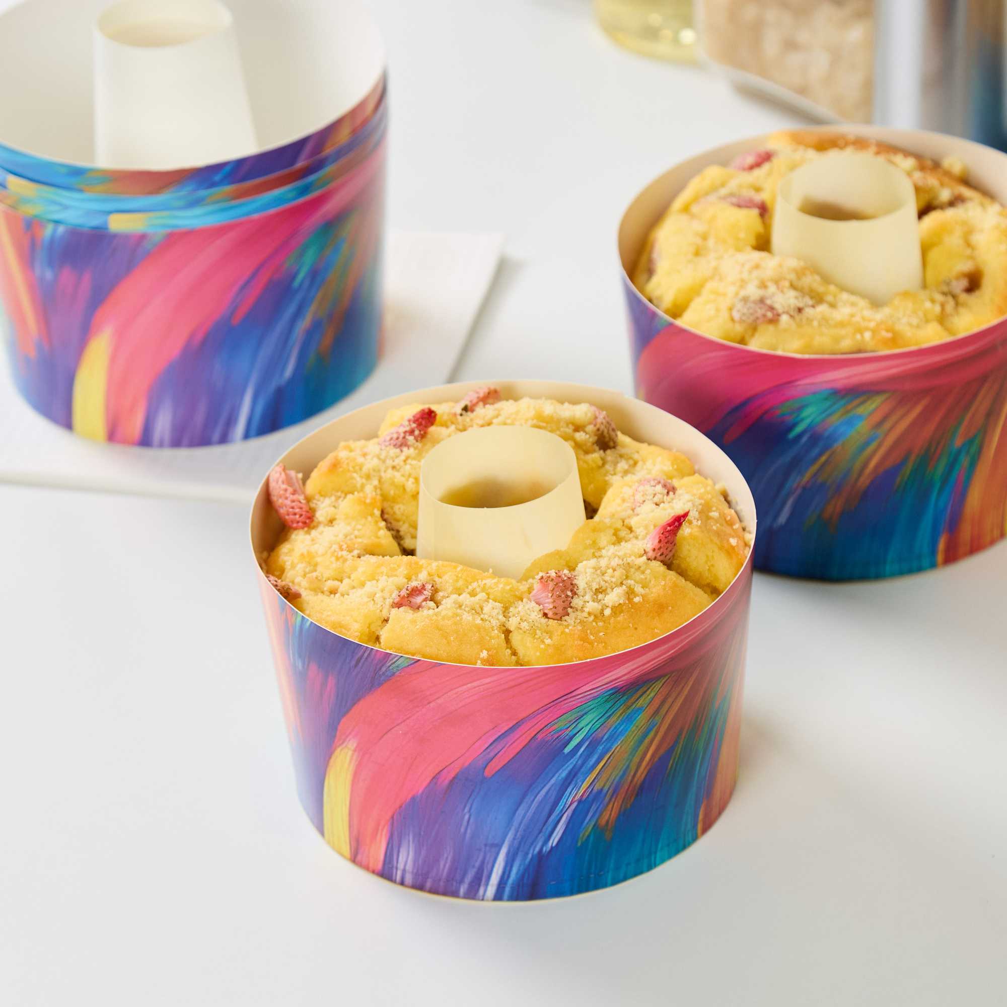 53 OZ PAPER BAKING RING MOLD - COLORFUL ABSTRACT WAVES, GREASEPROOF