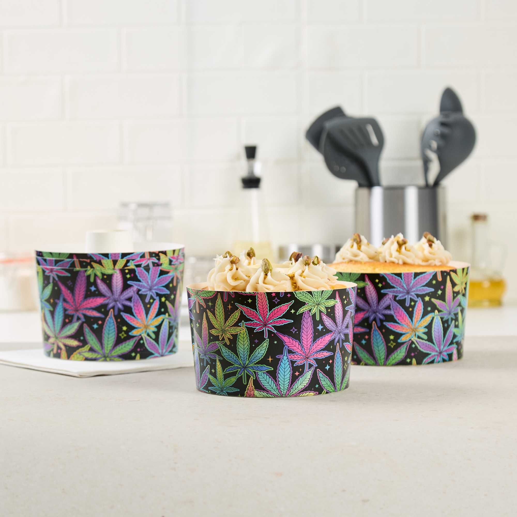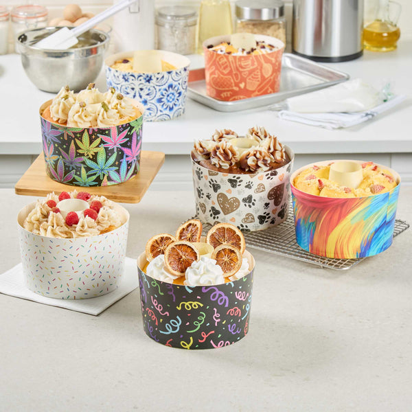53 OZ PAPER BAKING RING MOLD - TRIPPY LEAF PRINT, GREASEPROOF