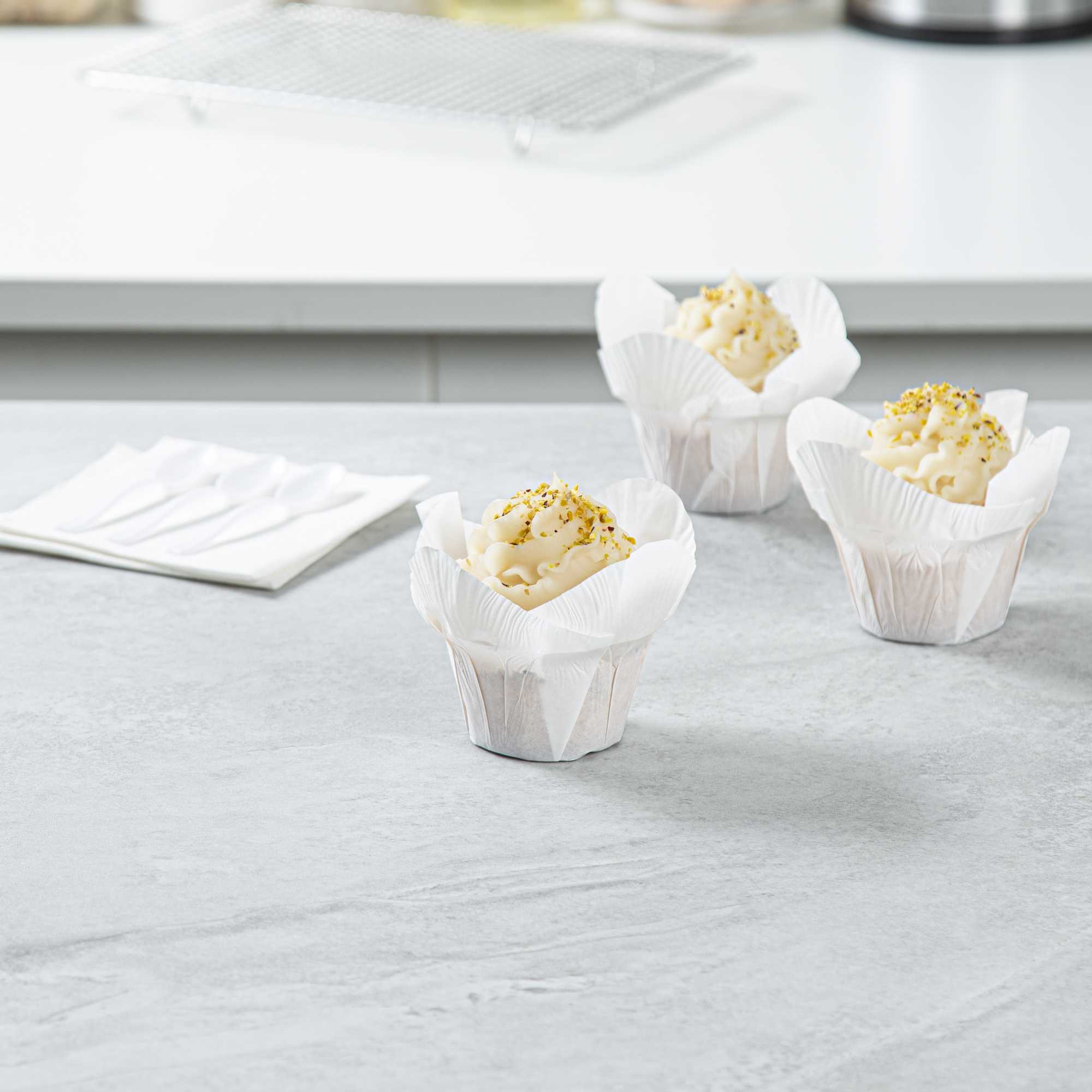 Designed with efficiency in mind, these sturdy baking cups are disposable, promoting an easy cleanup after every baking session. No hassle of scrubbing and washing after events!