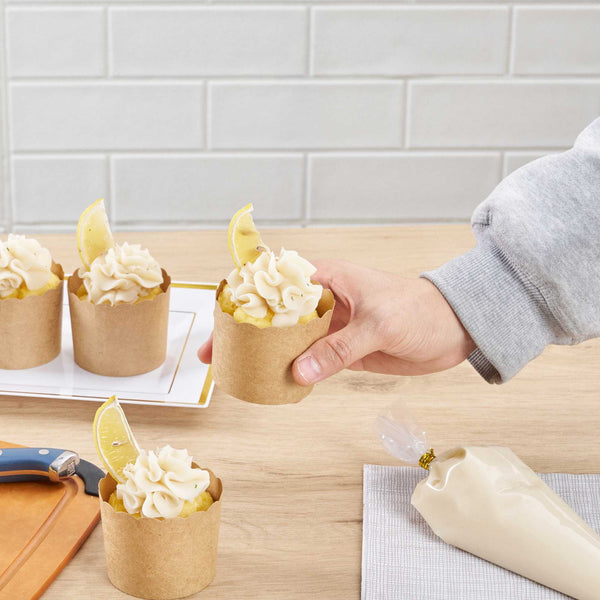 Equipped with a greaseproof PE lining, these mini baking cups avoid oil penetration and hold their shape for a tidy, effortless baking endeavor. Present your cupcakes in pristine looking wrappers.