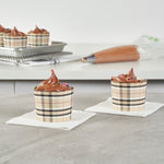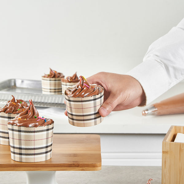 Enhance your baked goods with effortlessly stylish cupcake cups. The Panificio Greaseproof Cupcake Cups feature a greaseproof lining that ensures easy release of baked goods, making them a reliable choice for busy bakeries and cafes. Designed with elegant scalloped edges, these greaseproof baking cups add a sophisticated flair to any dessert presentation, capturing the attention of customers and enhancing the visual appeal of your offerings. Measuring 2.76 inches in diameter, these cups are oven-ready, allowing you to conveniently bake treats directly within them, thus streamlining your baking process. Their plaid design not only complements a range of dessert styles but also maintains structural integrity during baking and transport. Order now to elevate your dessert displays with these baking essentials. Each order includes 200 Panificio Greaseproof Cupcake Cups.