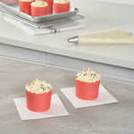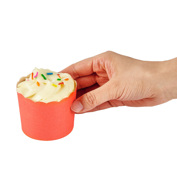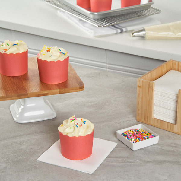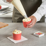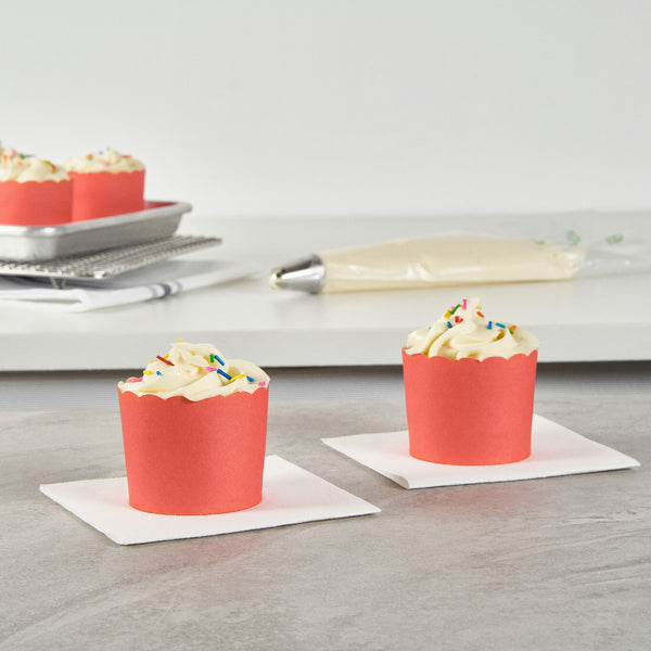 Enhance your dessert presentation with elegant flair. Panificio Greaseproof Cupcake Liners feature scalloped edges that add sophisticated style to pastries, making them perfect for bakeries and catering events. Designed with a greaseproof lining, these cupcake liners ensure easy release of treats, maintaining their delightful appearance without sticking or tearing. Boasting a 6-ounce capacity and dimensions of 2.75 inches by 2.75 inches by 2.25 inches, they are ideal for baking cupcakes and muffins directly in the cup, streamlining preparation in busy kitchens. These muffin cases are not only oven-safe but also freezer-safe, providing versatile functionality for various baking needs. Elevate your baked goods with these paper cupcake molds, ensuring they stand out with their beautiful tulip design and vibrant red color. Each order includes 200 Panificio Greaseproof Cupcake Liners.