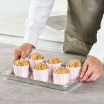 Enhance dessert presentations with charming packaging. Panificio Greaseproof Muffin Cups offer a scalloped design that adds elegance to your baked goods, ensuring they captivate customers. Featuring a greaseproof lining, these muffin cups guarantee easy release of treats, reducing waste and minimizing cleanup time in busy bakeries. Their 6-ounce capacity is perfect for serving a variety of baked items, from cupcakes to individual desserts, accommodating different portion sizes with ease. Made from durable paper, these cupcake liners maintain their shape during baking and support sustainable foodservice operations. Measuring 2.75 inches in diameter and 2.25 inches in height, these greaseproof baking cups fit standard muffin pans, making them ideal for both cafes and catering events. Elevate your baked goods with these stylish and practical baking solutions today. Each order includes 200 Panificio Greaseproof Muffin Cups.