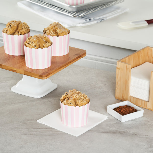 6 OZ ROUND STRIPE PINK PAPER CLASSIC BAKING CUP - SCALLOPED