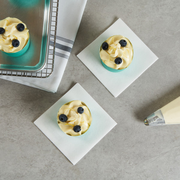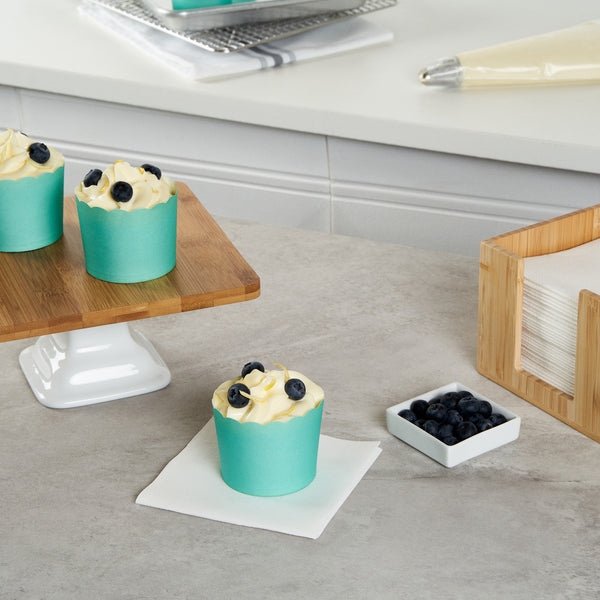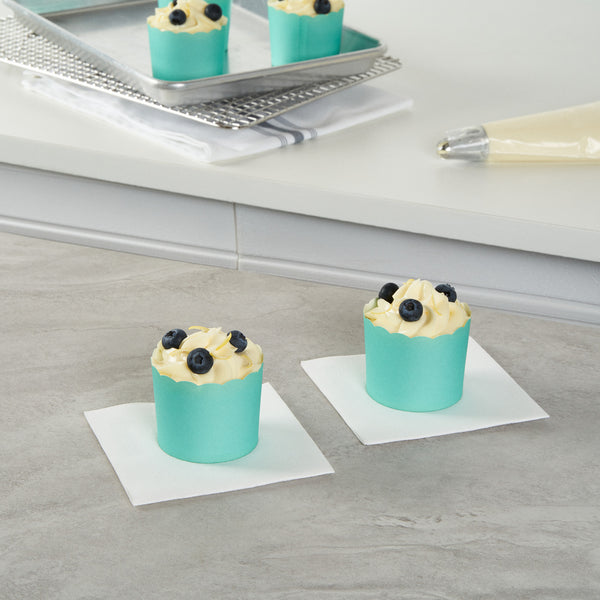 Enhance your baked goods display with our Panificio Greaseproof Muffin Cup. The scalloped edges of this muffin cup beautifully elevate the presentation appeal of your delectable treats, captivating customers' attention in any setting. Designed with a greaseproof lining, these scalloped baking cups ensure effortless release of muffins and cupcakes, streamlining your service and minimizing kitchen disruptions. With a 6-ounce capacity and dimensions of 2.75 inches by 2.75 inches by 2.2 inches, these paper baking cups provide ample space for a variety of baked items, enhancing your menu offerings. The vibrant turquoise color adds a pop of color to your bakery display, making each dessert stand out. Choose these baking cups for reliable performance and visual appeal. Each order includes 200 Panificio Greaseproof Muffin Cups.