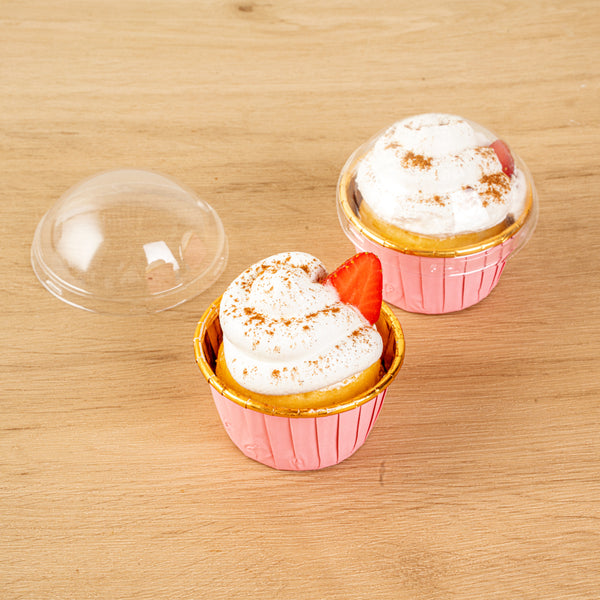 Ensure your treats stand out with elegant presentation. Panificio Dome Shape Baking Cups feature a distinctive dome design that provides extra room for toppings, keeping your creations beautifully intact and enhancing your clear dome lid displays. The clear finish of these cupcake display lids allows for quick and effortless identification of contents, making it easy to showcase your desserts with efficiency. Made from durable plastic, these round plastic lids offer reliable protection, ensuring your delectable treats remain safe during transport. Ideal for bakeries and caterers, the 2.7 inches by 2.7 inches by 1.5 inches dimensions provide a perfect fit for standard-sized cupcakes or muffins. Elevate your bakery's presentation and optimize your service with these recyclable and greaseproof baking cups. Sold in a 500 count box.