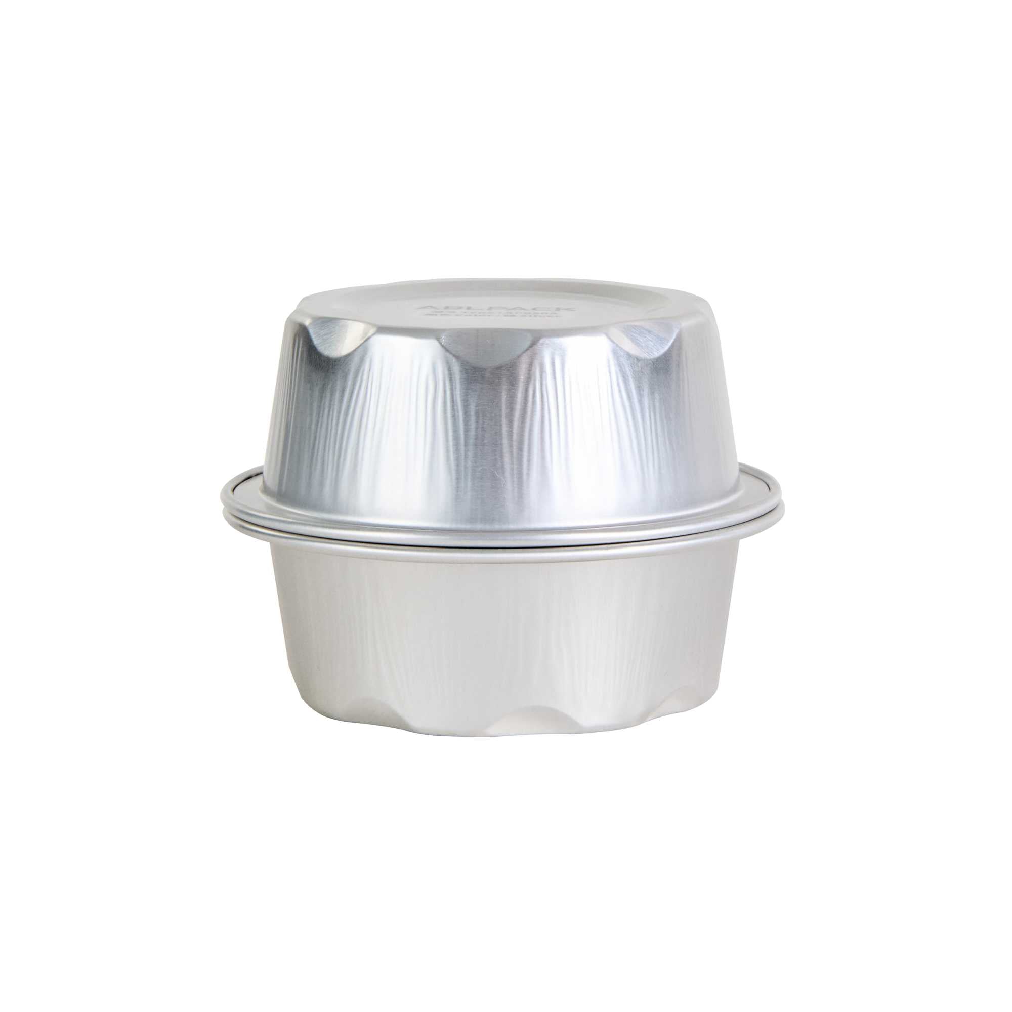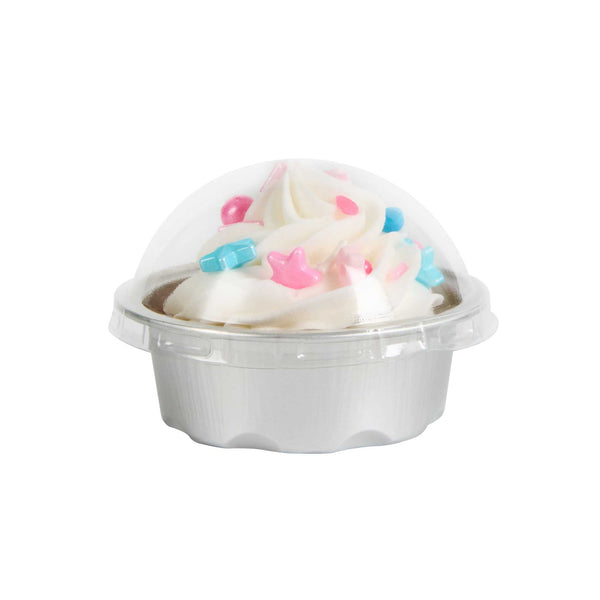2 OZ ROUND SILVER ALUMINUM BAKING CUP - WITH PLASTIC DOME LID