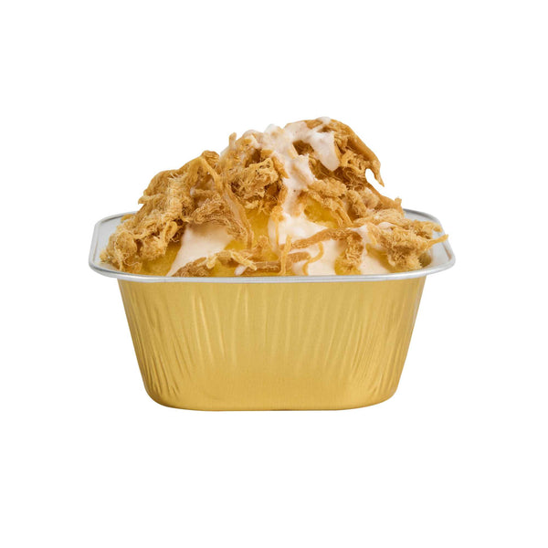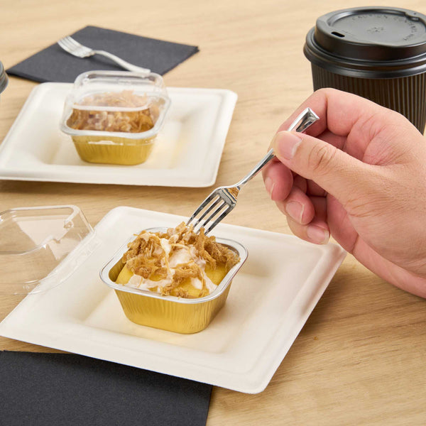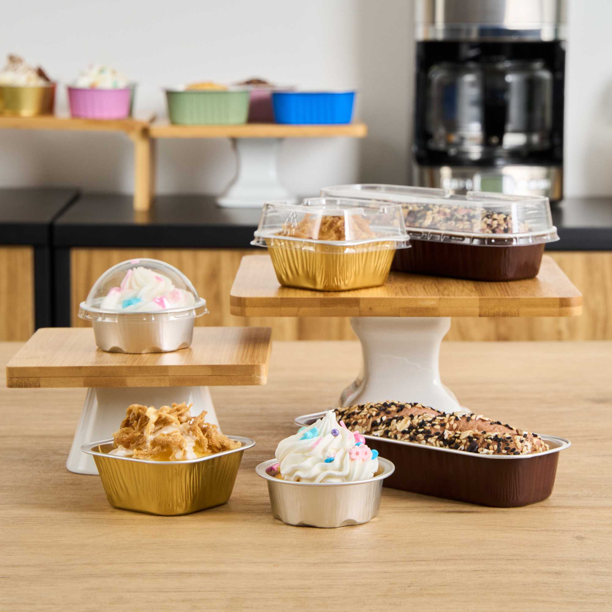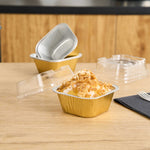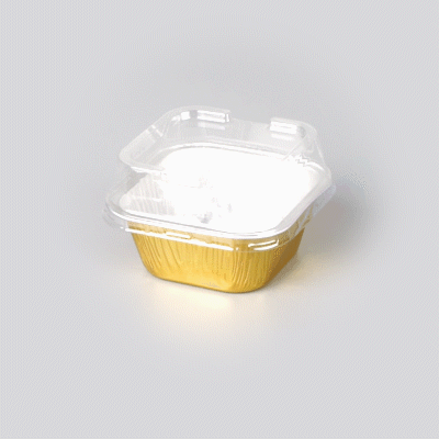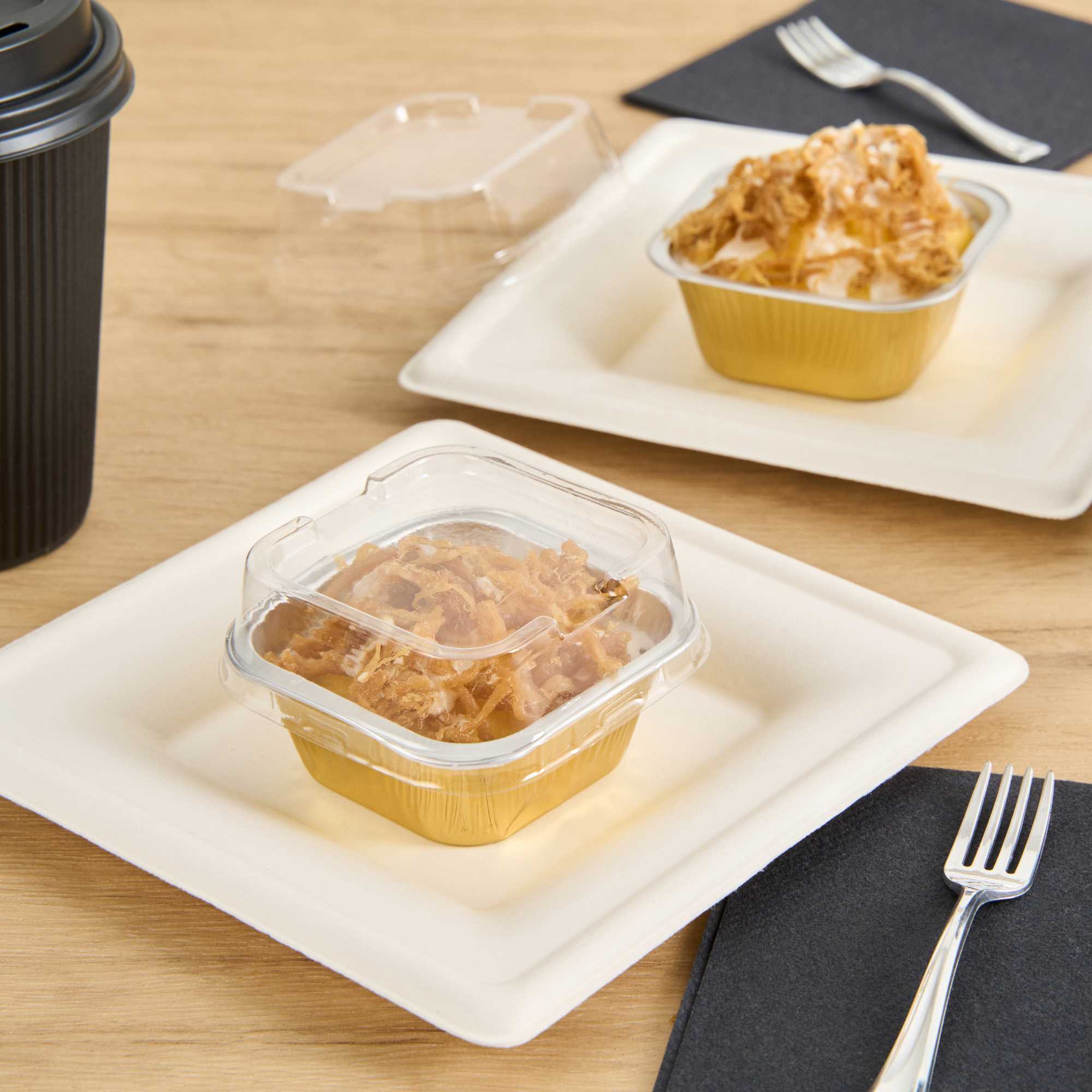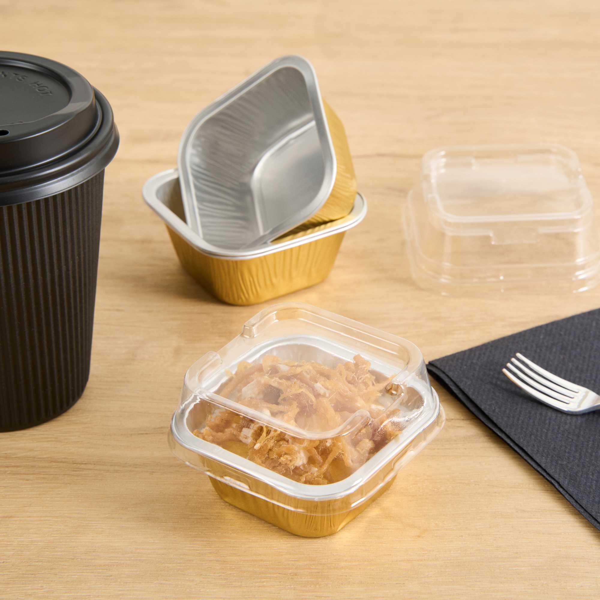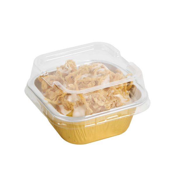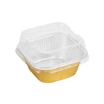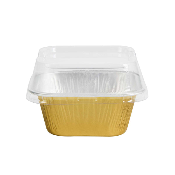 3 OZ SQUARE GOLD ALUMINUM BAKING CUP - WITH PLASTIC DOME LID