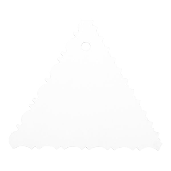 Add the final touch to your cakes with our Pastry Tek 3-Pattern Metal Cake Scraper and Icing Comb with Pleated Design Edges. Featuring 3 beautiful designs, this versatile cake comb creates eye-catching lines and stripes along the sides of your cakes that instantly boost the look of your delicious desserts. This durable frosting comb is equipped with a hanging hole to conveniently store in your bakery, patisserie, cake shop, or other foodservice establishment. Crafted from high-quality metal, this cake icing scraper is naturally scratch-resistant, shatterproof, and built for long-lasting commercial use. This icing scraper is great for decorating cakes of all shapes and sizes. We recommend hand washing only to maintain its premium design. Measuring 4.3 inches long by 3.8 inches wide, this cake decorating tool is sold in a 1 count box.