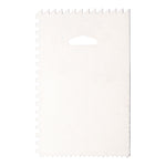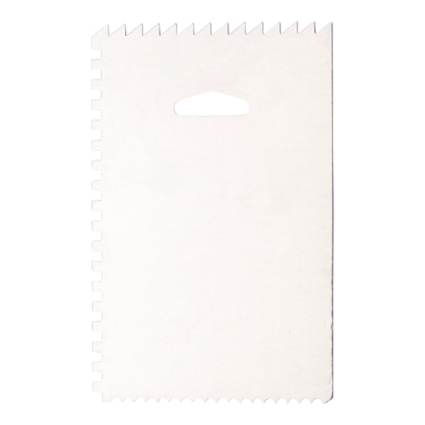 Add beautiful designs to sweet cakes with our Pastry Tek 4-Pattern Metal Cake Scraper and Icing Comb with Combo Straight Edge. With 4 beautiful designs, this multipurpose cake comb effortlessly makes stylish ribbons, sharp stripes, and smooth rounded stripes that instantly enhance your dessert presentation. Plus, the straight edge can be used to easily smooth out the sides and tops of your cakes. Equipped with a hanging tab, this metal cake scraper allows you to hang it in a convenient location and provides space-saving storage. This shatterproof icing comb is constructed from premium metal and is built for long-lasting use at your bakery, patisserie, cake shop, or other foodservice establishment. We recommend hand washing to maintain its premium structure. Measuring 6 inches long by 3.8 inches wide, this buttercream scraper is shipped in a 1 count box.