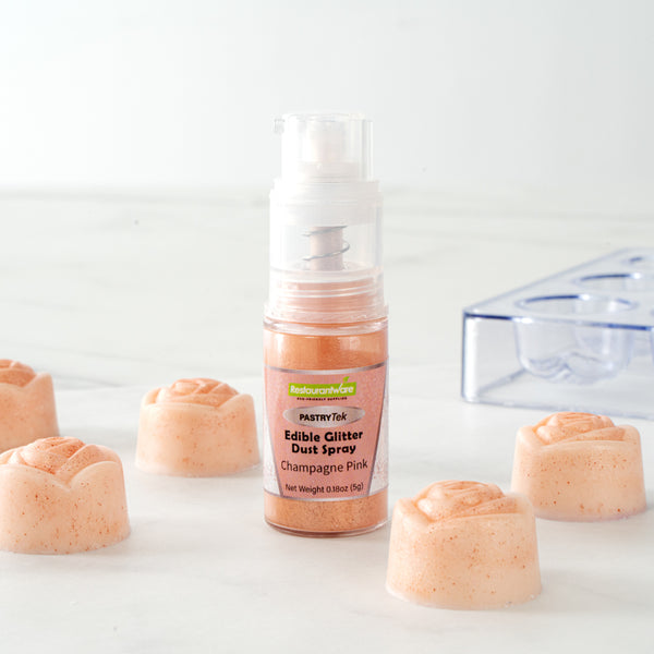 Top off your punch with our Pastry Tek 5-Gram Pink Edible Glitter Dust Spray. Ideal for fresh loafs or ice cream, these edible sparkles for cakes can be used on hot or cold foods. To give your drinks a glamorous look, this pink edible glitter spray is water-soluble. Equipped with a non-aerosol pump spray, these edible sparkles for cakes allow you to evenly distribute glitter on desserts. This glitter dust spray is FDA-approved, kosher-certified, and vegan so you can serve customers with these dietary restrictions. To maintain its quality, this edible glitter for drinks must be stored in a cool, dry place away from direct sunlight, frost, and heat. Featuring a pink color, this edible sugar glitter is perfect for decorating pastries for birthday parties and baby showers. This edible glitter dust contains 5 grams of sparkles. Sold in a 1 count box.