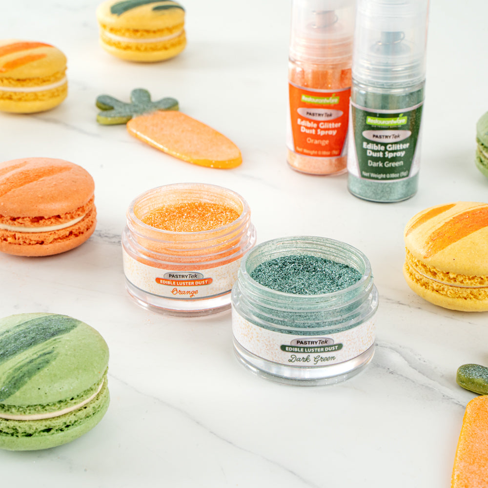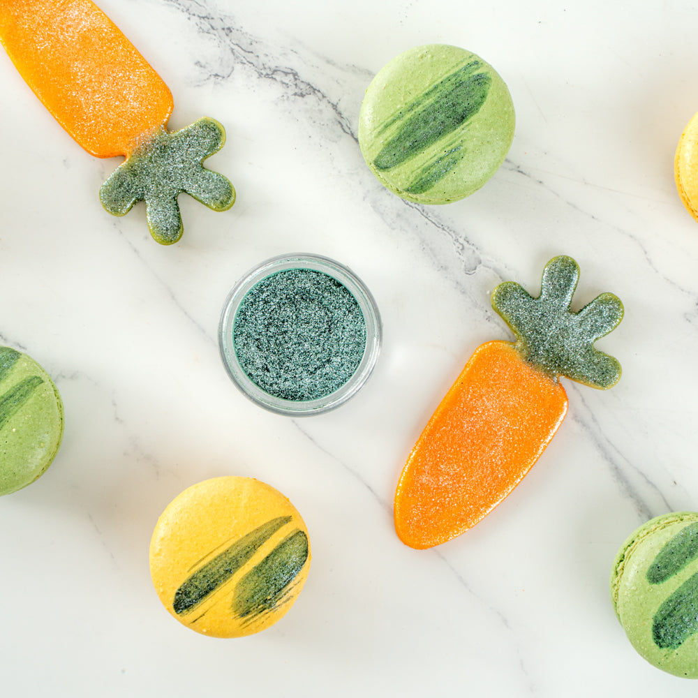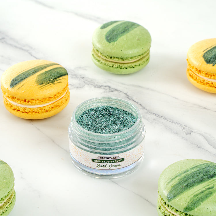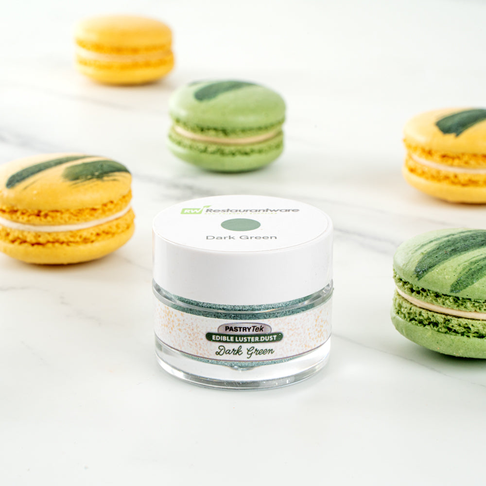 Add some sparkle to all of your baked goods with our Pastry Tek 5-gram Dark Green Edible Luster Dust. Made from FDA-approved and kosher-certified ingredients, this edible glitter is suitable to use on any type of food. With a water-soluble composition, this luster dust can easily be mixed into cold beverages or sprinkled on warm cookies. This food-grade dessert glitter has a shimmer dark green finish to effortlessly complement any party theme. To prevent messy spills and retain optimal quality, this edible luster dust is equipped with a tamper-evident, protective inner seal. This food glitter has a total capacity of 5 grams. Store in a cool, dry place away from direct sunlight to preserve the quality of this cake glitter.