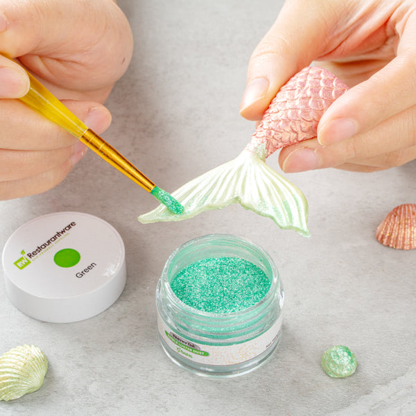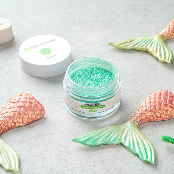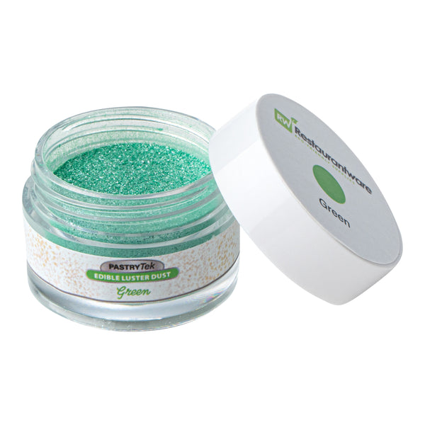 Have your baked goods be the life of the party with our Pastry Tek 5-gram Green Edible Luster Dust. Made from FDA-approved ingredients, this edible glitter is ideal for use in all kinds of drinks or treats. Plus, it's also kosher-certified. For mixing into beverages or sprinkling on dry ingredients, this luster dust is water-soluble. To avoid messes and maintain optimal quality, this edible luster dust features a tamper-evident, inner protective seal. This food-grade dessert glitter has a green shimmer finish to match the theme of any party or special event. Suitable for multiple uses, this food glitter has a 5-gram capacity. Sold in a 1 count box. Store in a cool, dry place away from direct sunlight to preserve the quality of this cake glitter.
