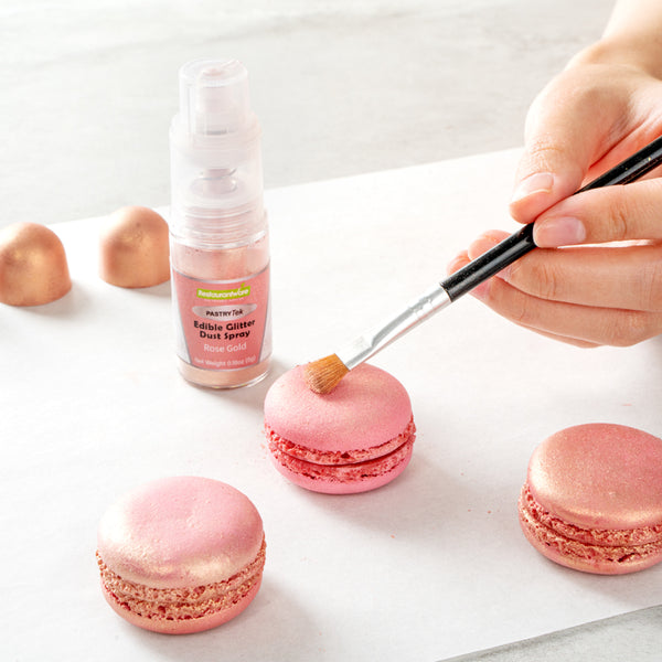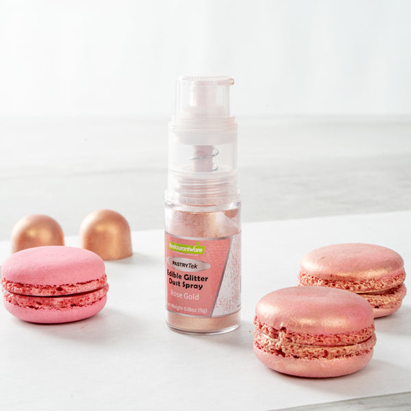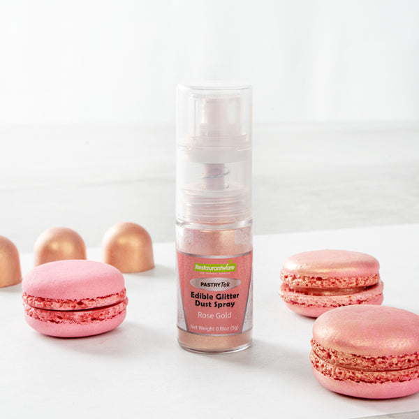 Enhance your culinary creations with sparkling precision. The Pastry Tek Edible Glitter Spray, crafted in a captivating rose gold hue, delivers dazzling effects with ease. Its FDA-approved composition ensures seamless integration into your menu, while the water-soluble design simplifies mixing into both wet and dry ingredients, making it a versatile food grade glitter spray. With dimensions of 0.98 inches in length and height, this compact spray is perfect for precision application on cakes, pastries, and more. Its inner protective seal effectively locks in freshness and maintains the optimal quality of the glitter powder, ensuring that your dishes always shine. Additionally, being 100% edible, vegan, and gluten-free, this product caters to a wide range of dietary preferences. Elevate your presentation effortlessly with this rose gold edible glitter spray and make every dish an eye-catching masterpiece. Each order includes 1 Pastry Tek Edible Glitter Spray.