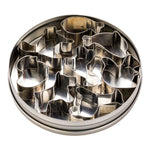 8-PIECE METAL ANIMAL COOKIE CUTTER SET IN ROUND TIN BOX