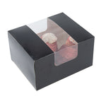 Have sweets ready to go with our Pastry Tek Black Paper Pastry / Cake Boxes. Featuring a crystal clear window, these cupcake holder boxes give potential customers a peek of your baked goods. To eliminate messes from batters or frostings, these pastry boxes are grease-resistant. The sophisticated black finish of these Swiss roll boxes gives your fare a chic and stylish appearance. Great for restaurants or catering services, these window bakery boxes are recyclable to reduce the amount of cleanup. These disposable cake boxes are shipped flat for effortless storage in your commercial kitchen. To quickly package food, these bakery boxes are easily assembled. These black cake boxes measure 7 inches long by 6 inches wide by 4 inches tall. Sold in a 100 count box.