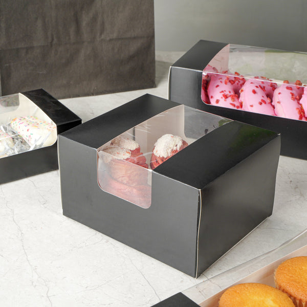 BLACK PAPER PASTRY / CAKE BOX - WITH WINDOW