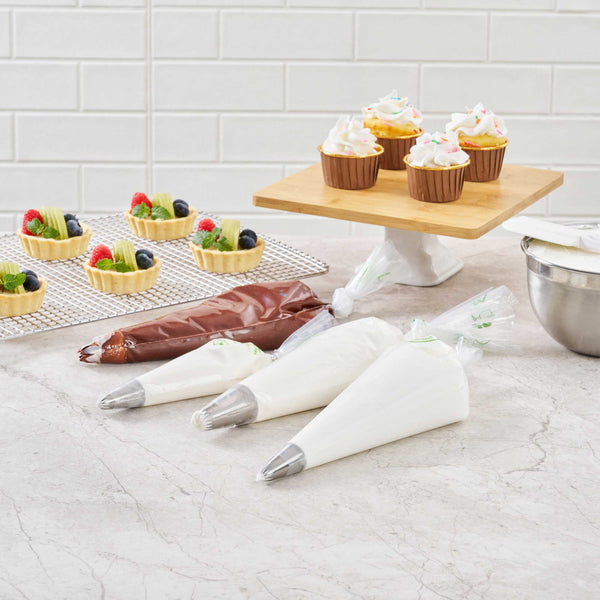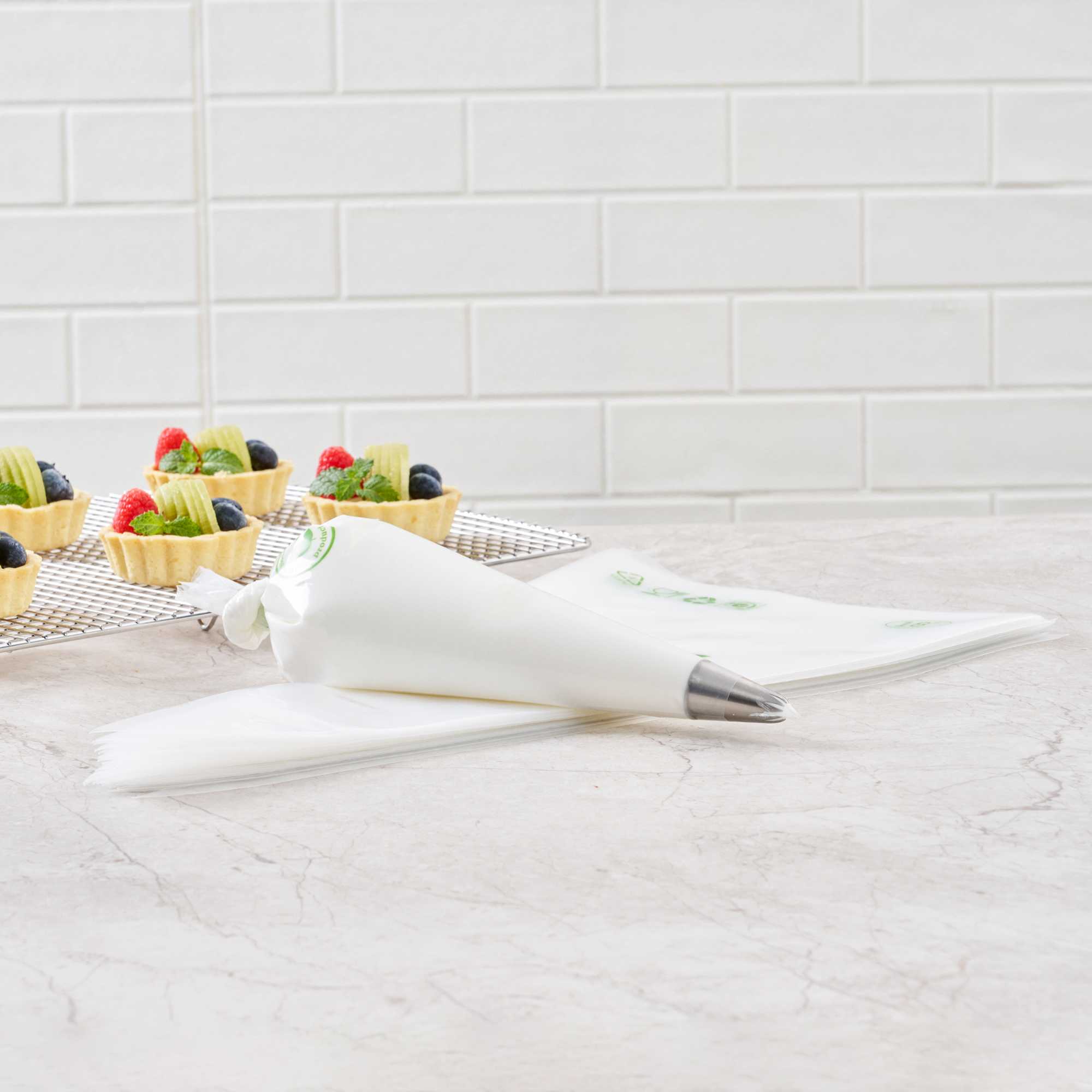 From royal icing to buttercream frosting, these piping bags are constructed with reinforced seams to allow you to pipe all types of frosting without bursting open.
