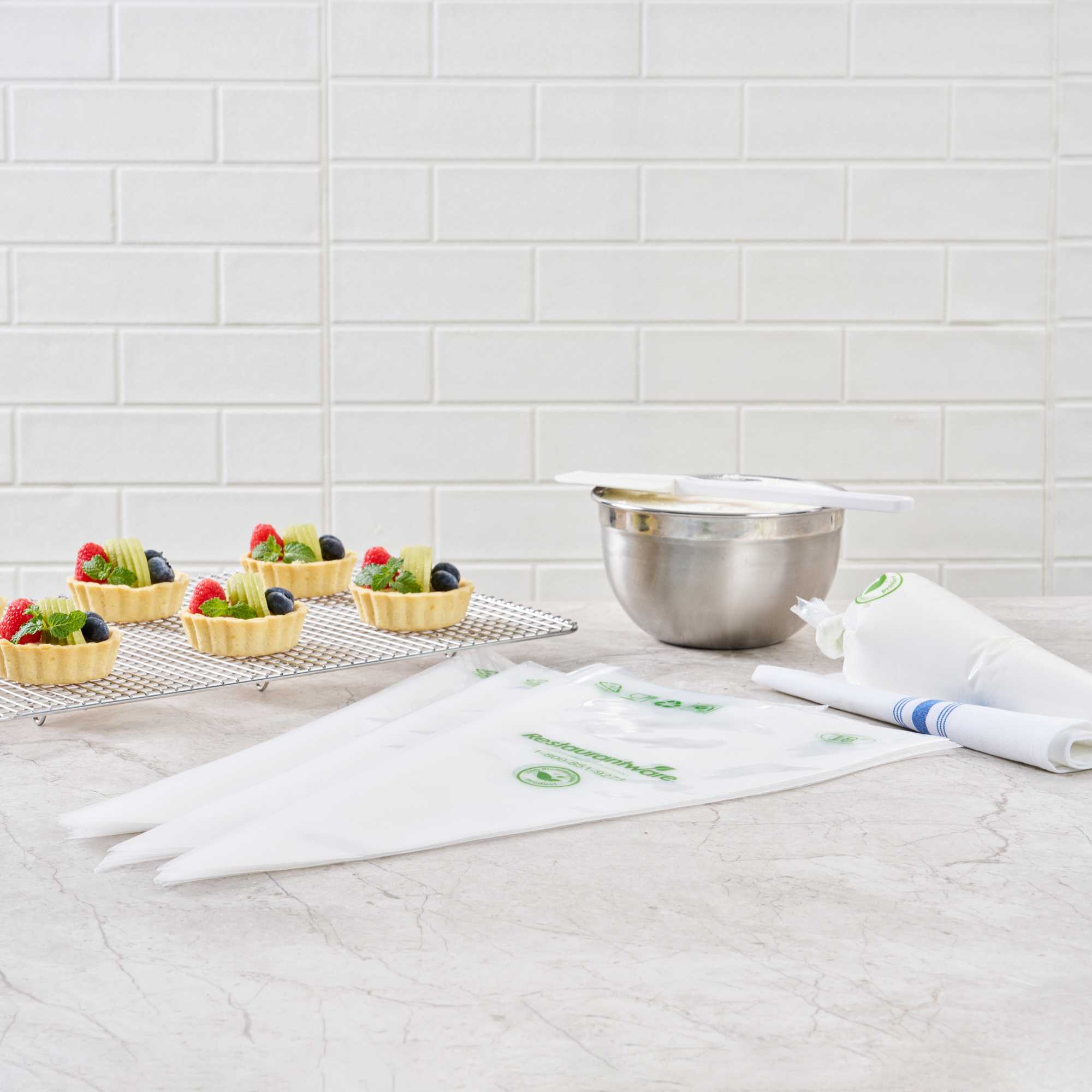 Crafted from nature-friendly plastic that is commercially compostable, biodegradable, and a great alternative to other piping bags. Make the right choice!