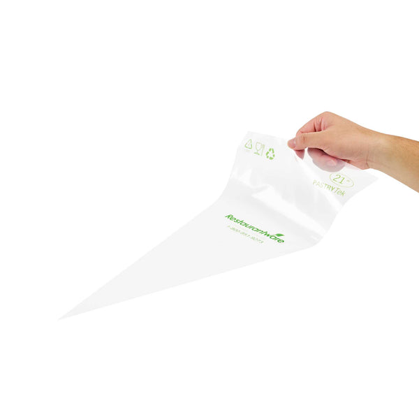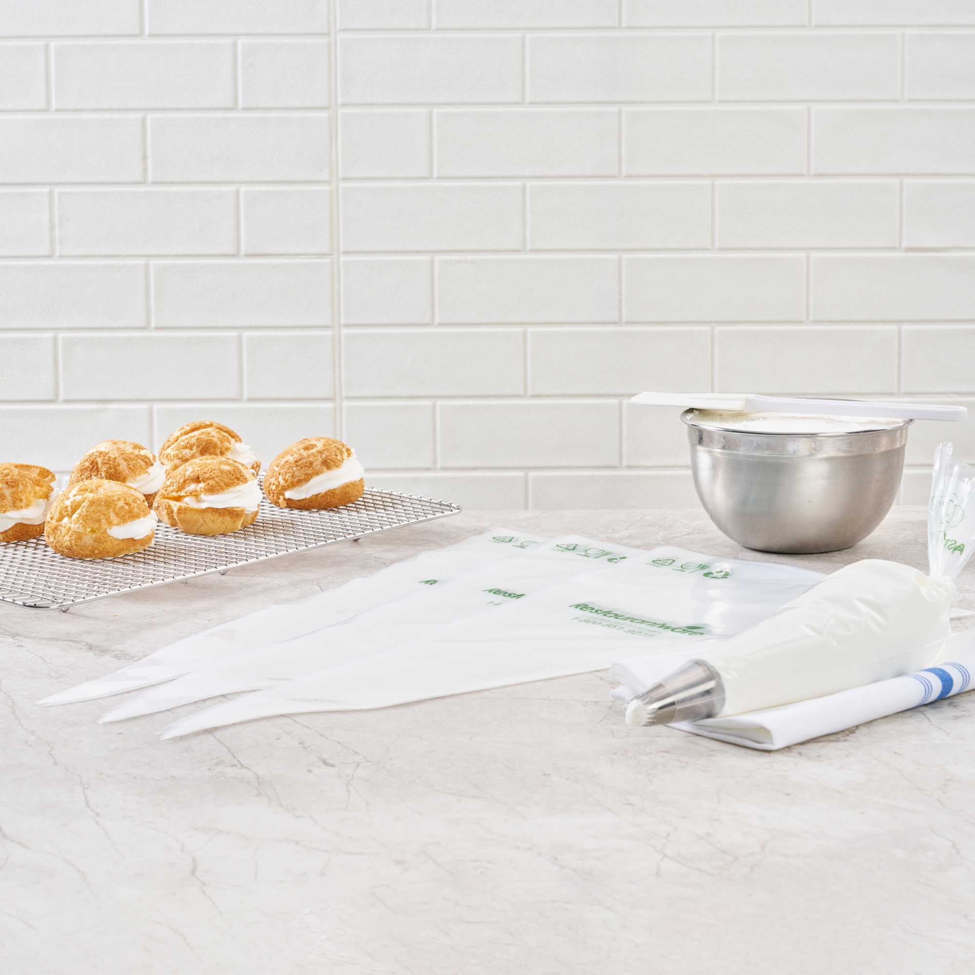 Made from premium plastic, these icing bags are conveniently disposable for quick cleanup after decorating desserts. These decorating bags are green alternatives to traditional piping bags.