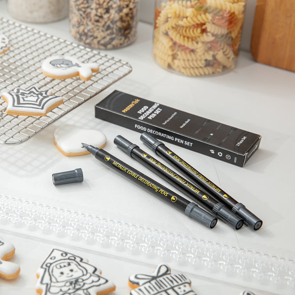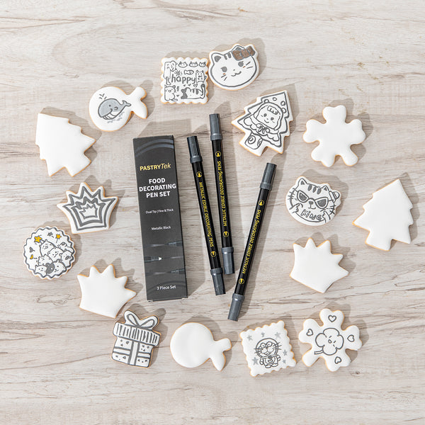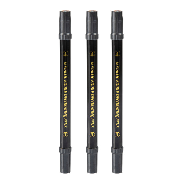 DUAL-TIP METALLIC 3 BLACK FOOD DECORATING PEN SET