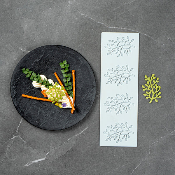 GRAY SILICONE BRANCH WITH LEAVES FONDANT IMPRESSION MAT