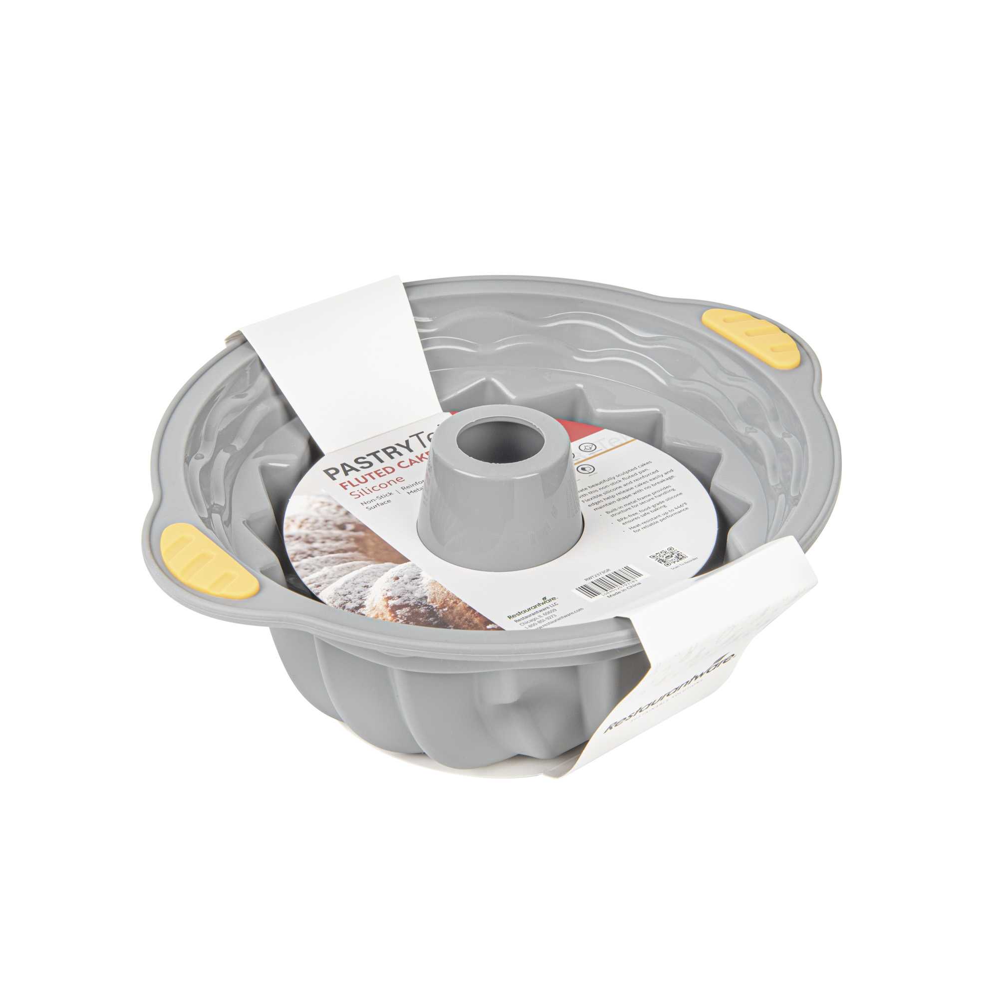 Enhance baking performance with our Pastry Tek Gray Silicone Kugelhopf / Fluted Bundt Cake Pans. Made with non-stick surfaces, these silicone cake molds ensure clean food release and reduce the need for added grease. Featuring temperature-resistant constructions, these oven-friendly and freezer-compatible molds support both hot and cold applications with ease. Designed with reinforced structures, these silicone baking molds integrate metal within the silicone bodies for added stability. Made from food-grade, BPA-free silicone, they offer a reliable solution for professional kitchens. Streamline clean-up with these dishwashable silicone molds, ideal for reducing labor in fast-paced environments. With sleek gray finishes and durable, greaseproof surfaces, they are versatile additions to any bakery or restaurant. Measuring 11.22 inches in length by 10.24 inches in width and 3.94 inches in height, these silicone cake molds accommodate a variety of culinary creations. Sold in a 8 count box.