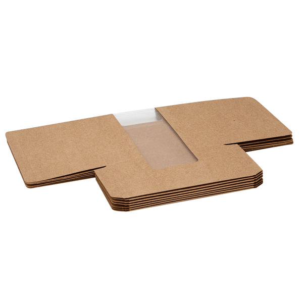 Securely pack cakes, cookies, or charcuterie using our Pastry Tek Kraft Paper Pastry / Cake Boxes. Constructed with a clear window, these cake boxes provide a way to show off the packaged sweets. These paper cake boxes are grease-resistant to prevent oils from leaking through, maintaining the overall presentation of catered orders. For easy and earth-friendly cleanup, these cookie boxes with windows are recyclable. These bakery boxes have a kraft brown finish to add a rustic look to your baked orders. To save space in your storage area, these cupcake boxes are shipped flat and are easy to assemble for quick packaging. The kraft cake boxes measure 9.75 inches in length by 4.75 inches in width by 4 inches in height. Sold in a 100 count box.