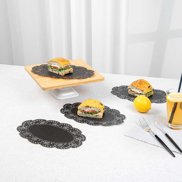 OVAL BLACK PAPER DOILIES - LACE -