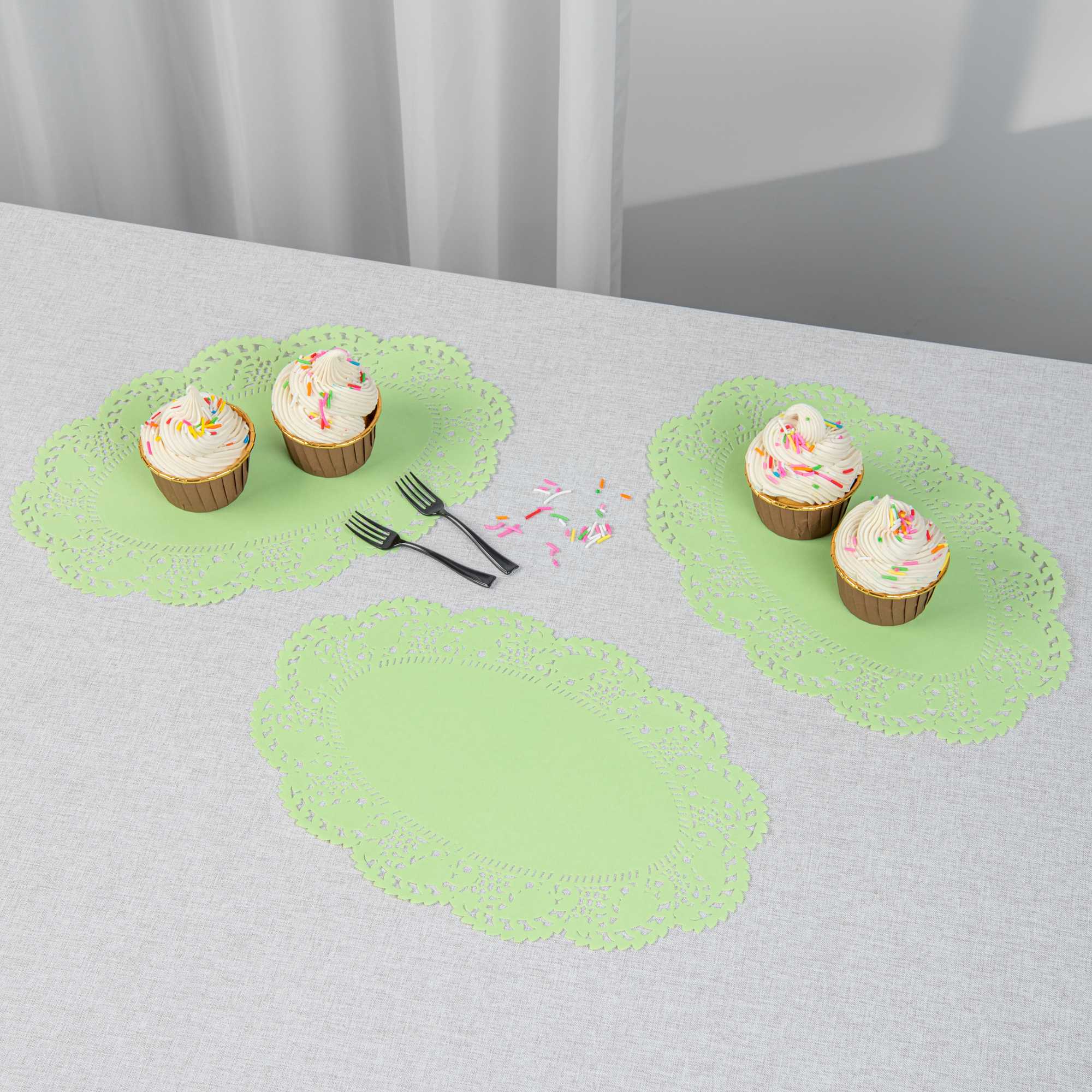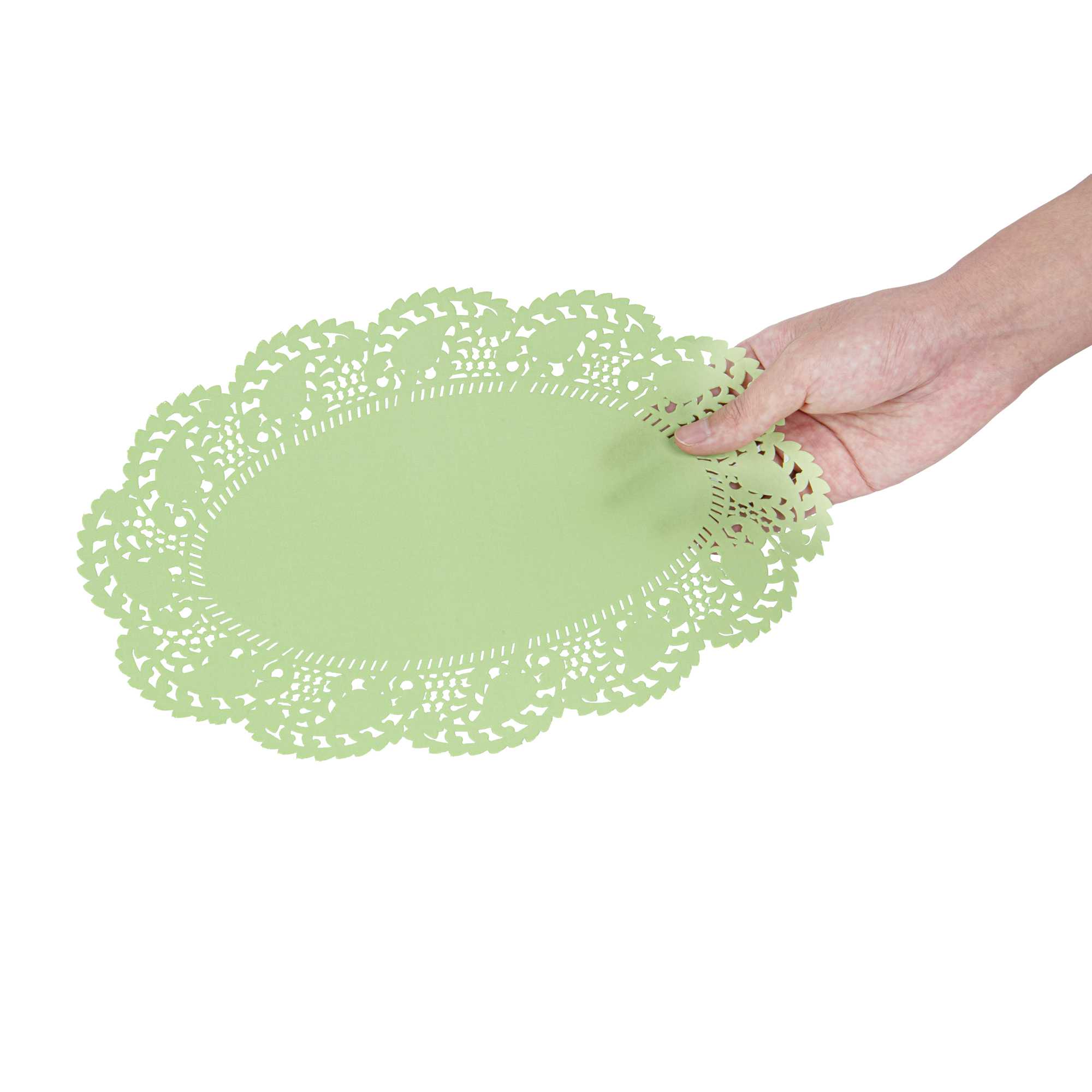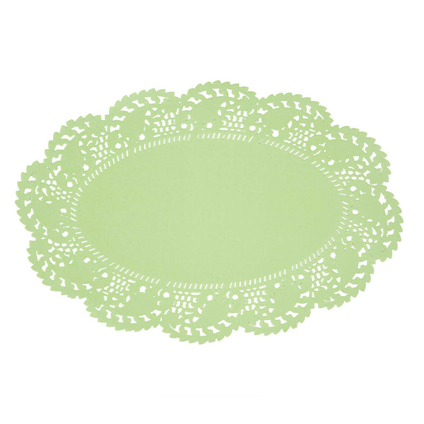OVAL GREEN PAPER DOILIES - LACE - 12 1/2" X 8 1/2" - 100 COUNT BOX