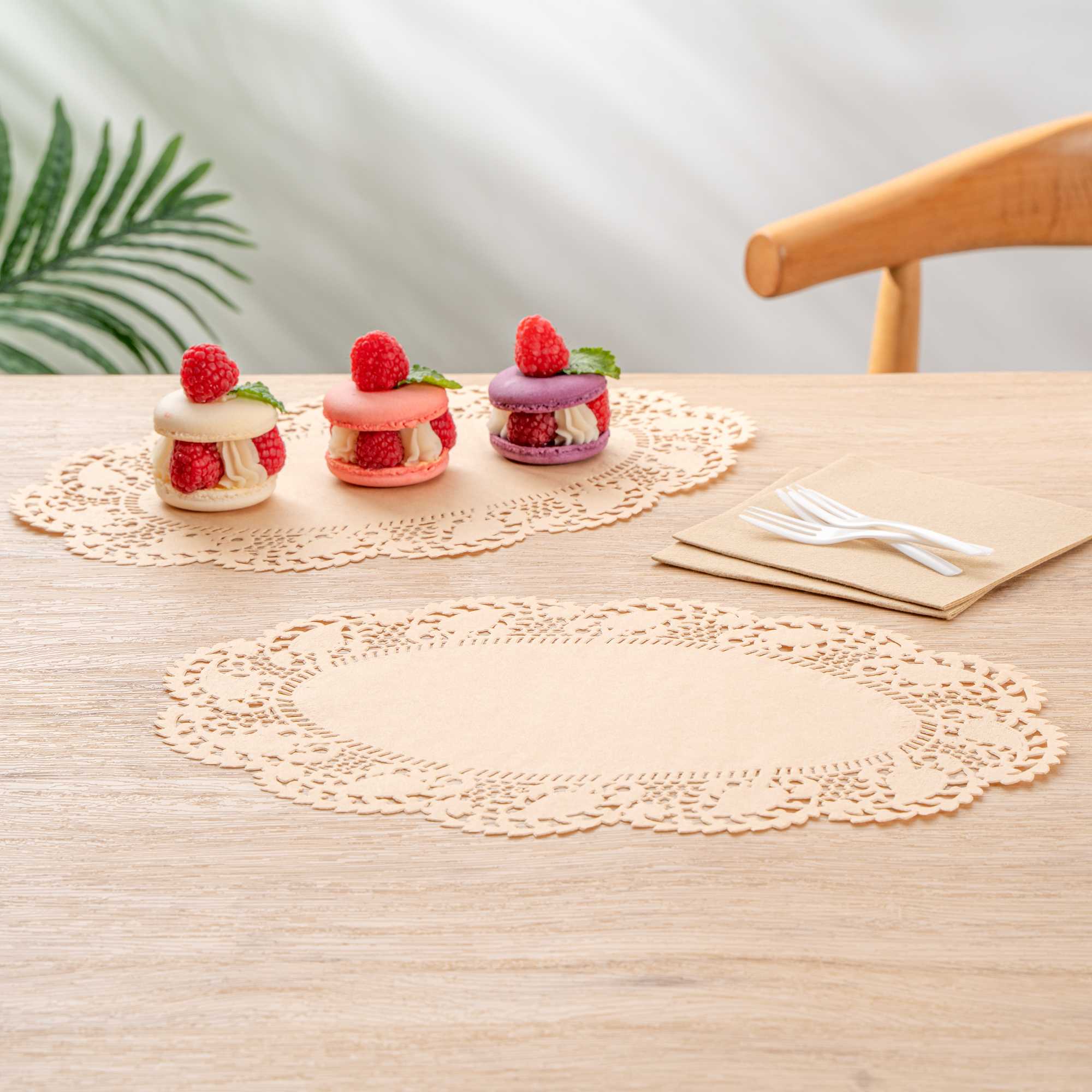 OVAL KRAFT PAPER DOILIES - LACE - 12 1/2" X 8 1/2" - 100 COUNT BOX