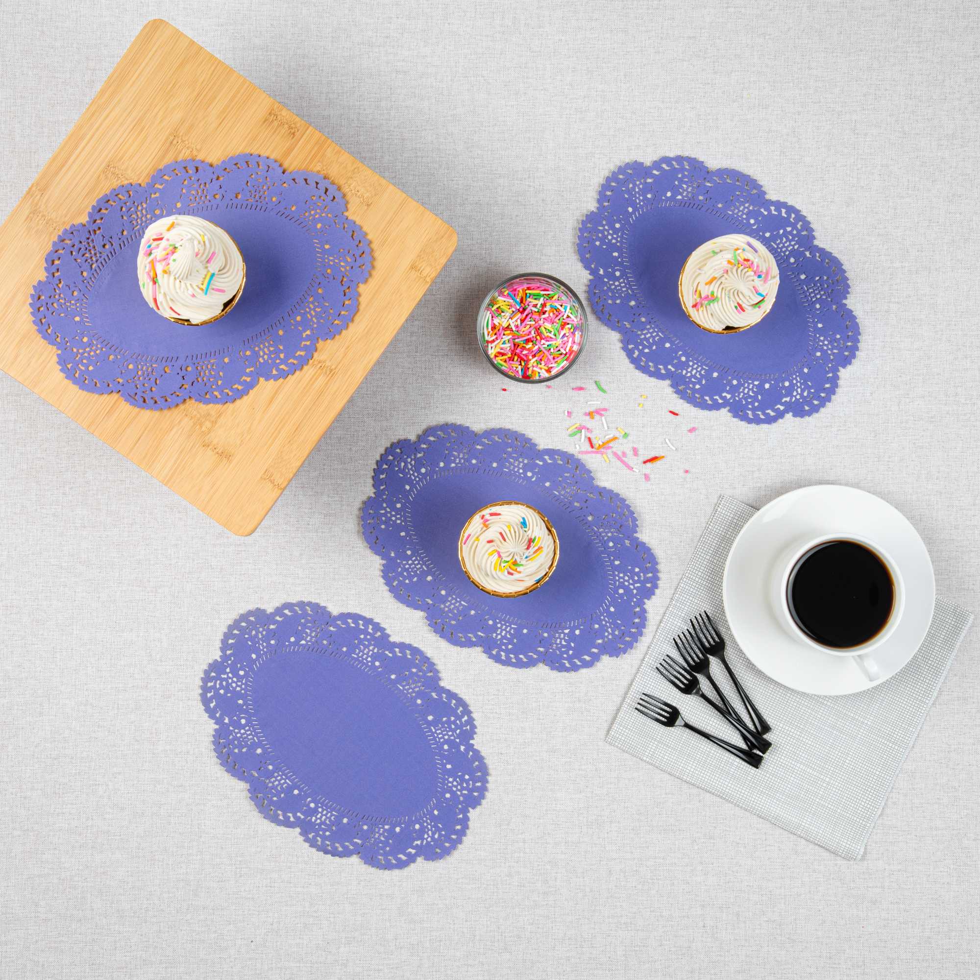 Elevate your dessert displays with our Pastry Tek Oval Purple Paper Doilies. Crafted from high-quality paper, these lace doilies provide durability while showcasing desserts at bakeries without tearing or losing their structural integrity. These lace-like details enhance the visual appeal of food presentations, serving as functional barriers that protect surfaces and absorb moisture. Designed with a pink colored finish, these versatile paper doilies seamlessly complement a wide range of table settings and themes, making them an ideal choice for various events and occasions. Additionally, these disposable small doilies eradicate the hassle of post-event cleanup, offering a convenient and time-saving solution for busy cafes and food establishments. Perfect for use under cupcakes, petit fours, macarons, and other small treats, these table doilies add an elegant touch to any dessert display. Measuring 9 inches in length by 6.5 inches in width, these colored paper doilies are the perfect size for your needs. Sold in a 4,000 count box.