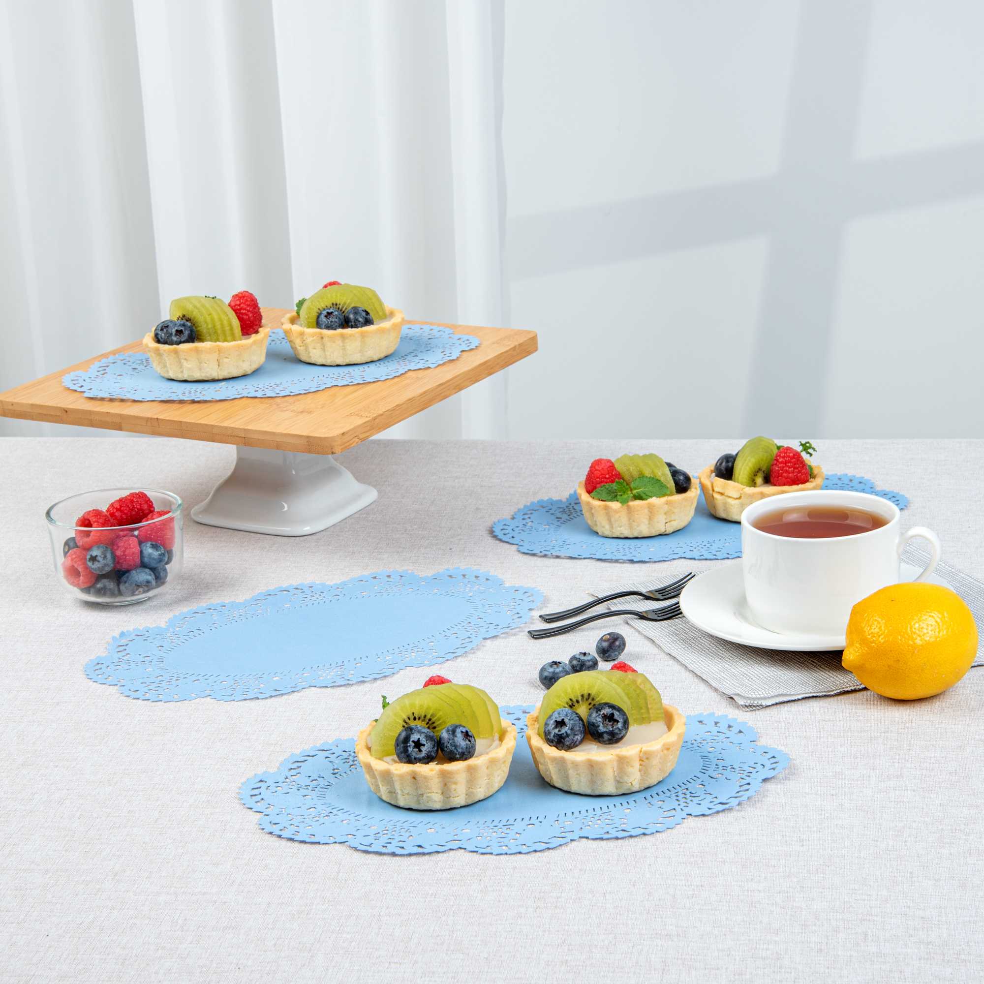 OVAL SKY BLUE PAPER DOILIES - LACE -