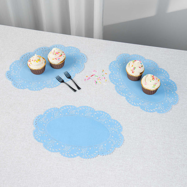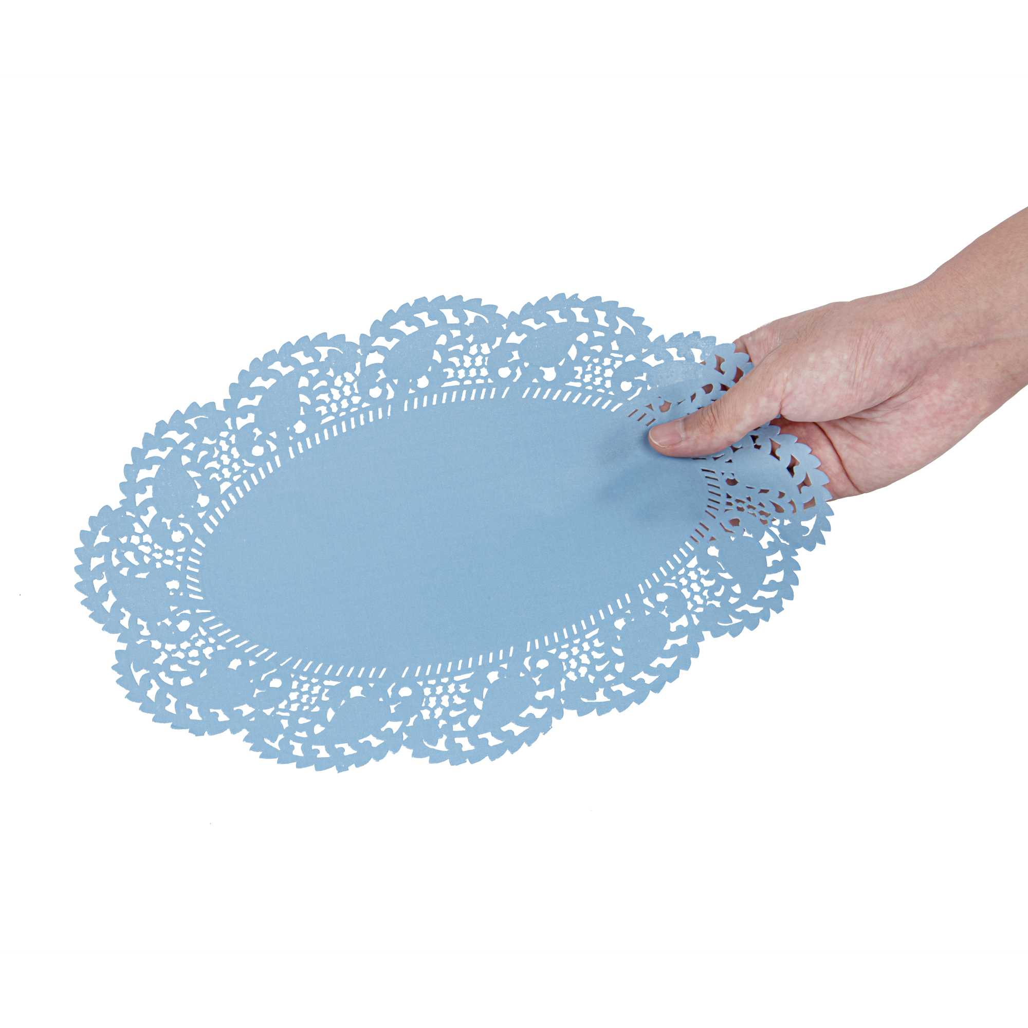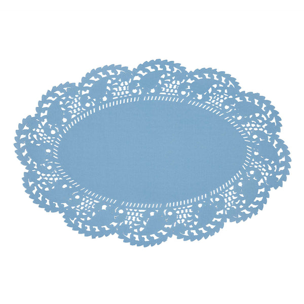 OVAL SKY BLUE PAPER DOILIES - LACE - 12 1/2" X 8 1/2" - 100 COUNT BOX