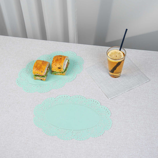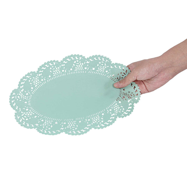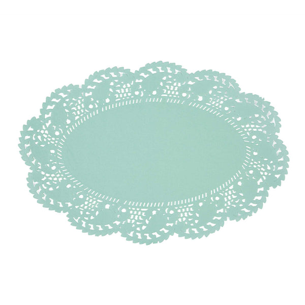 OVAL TEAL PAPER DOILIES - LACE - 12 1/2" X 8 1/2" - 100 COUNT BOX