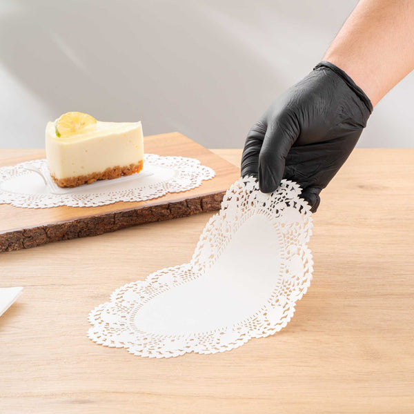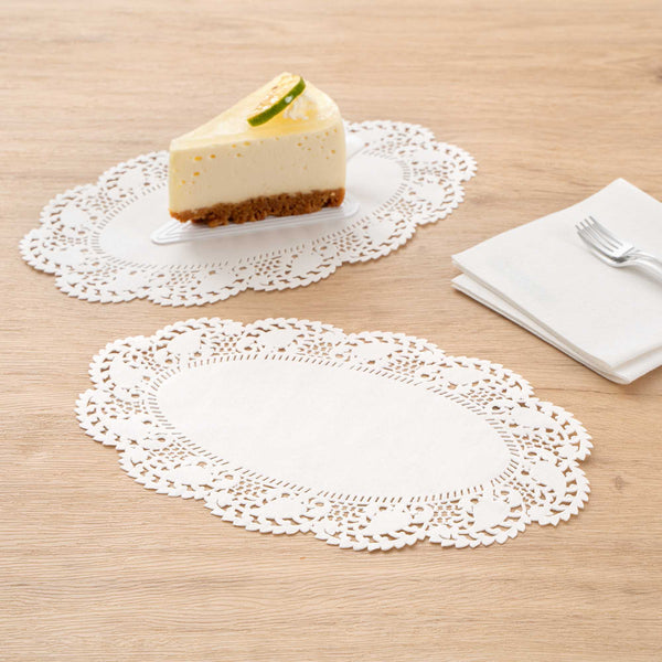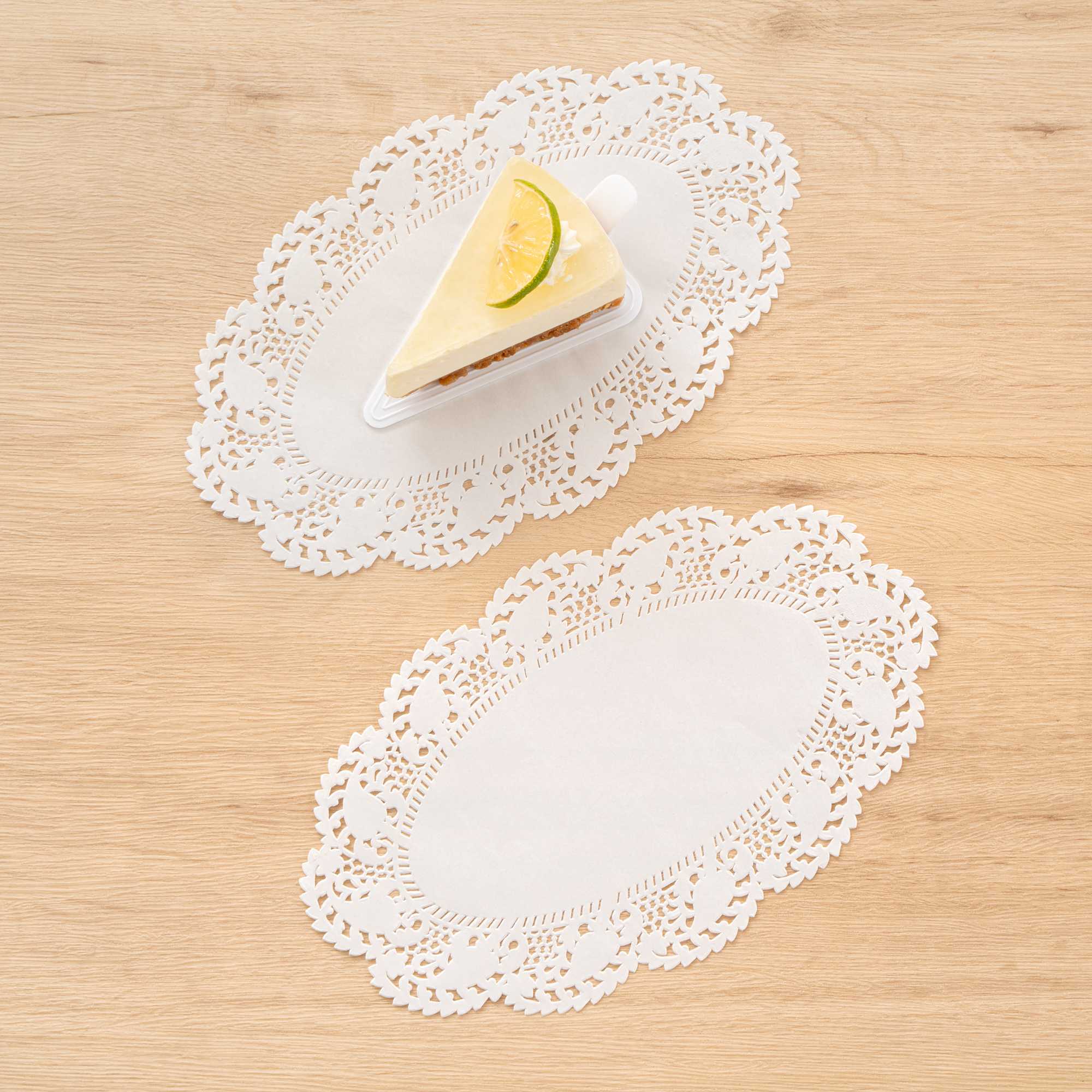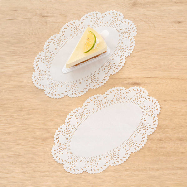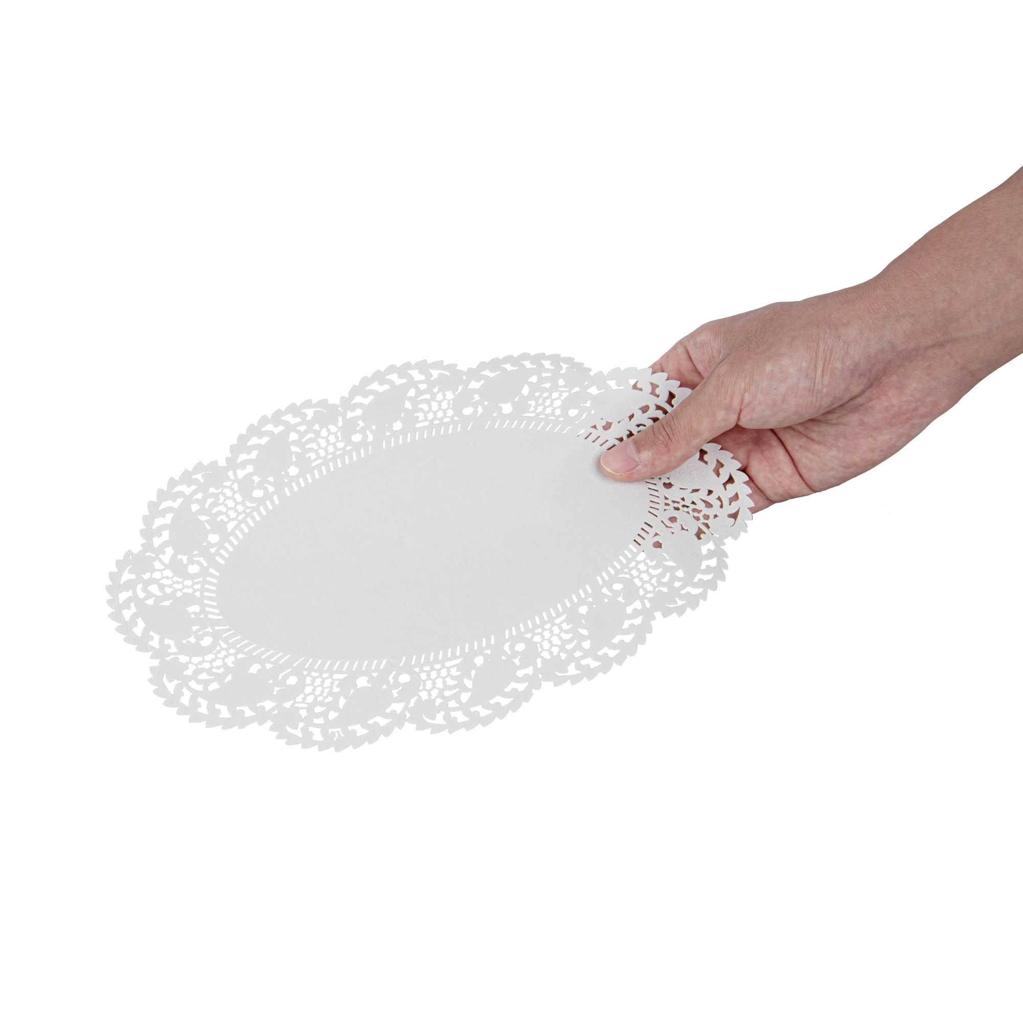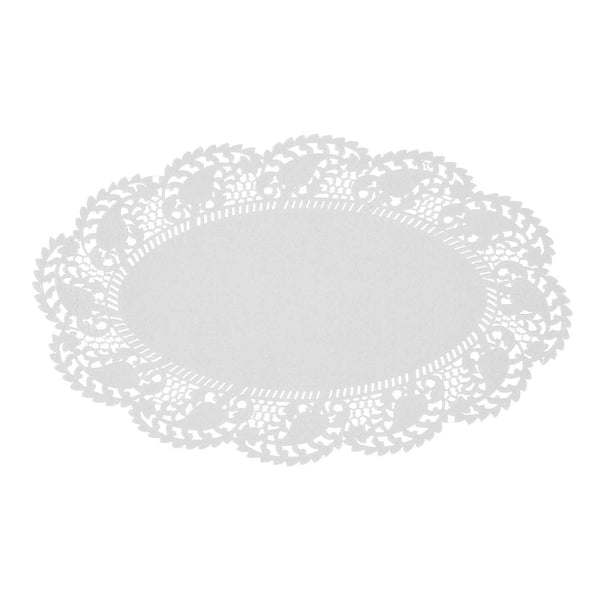 Elevate your dessert displays with our Pastry Tek Oval White Paper Doilies, adding a touch of elegance to any presentation. Crafted from high-quality paper, these lace doilies offer exceptional durability, perfect for showcasing desserts at bakeries or catered luncheons without tearing or losing structural integrity. The intricate lace-like details of these table doilies not only enhance the visual appeal of your food presentations but also serve as functional barriers that protect surfaces and absorb moisture. Featuring a white colored paper finish, these doilies complement a wide range of table settings and themes, making them ideal for various events and occasions. Designed for convenience, these disposable paper doilies eradicate the hassle of post-event cleanup, offering a time-saving solution for busy cafes and food establishments. Ideal for use under cupcakes, petit fours, macarons, and other small treats, these small doilies are as functional as they are decorative. Measuring 10.5 inches in length by 6.5 inches in width, these lace doilies provide ample coverage for your culinary creations. Sold in a 100 count box.