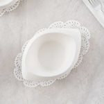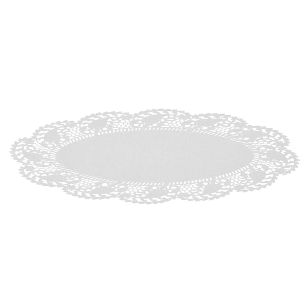 Elevate your dessert displays with our Pastry Tek Oval White Paper Doilies, adding a touch of elegance to any presentation. Crafted from high-quality paper, these lace doilies offer exceptional durability, perfect for showcasing desserts at bakeries or catered luncheons without tearing or losing structural integrity. The intricate lace-like details of these table doilies not only enhance the visual appeal of your food presentations but also serve as functional barriers that protect surfaces and absorb moisture. Featuring a white colored paper finish, these doilies complement a wide range of table settings and themes, making them ideal for various events and occasions. Designed for convenience, these disposable paper doilies eradicate the hassle of post-event cleanup, offering a time-saving solution for busy cafes and food establishments. Ideal for use under cupcakes, petit fours, macarons, and other small treats, these small doilies are as functional as they are decorative. Measuring 10.5 inches in length by 6.5 inches in width, these lace doilies provide ample coverage for your culinary creations. Sold in a 4,000 count box.