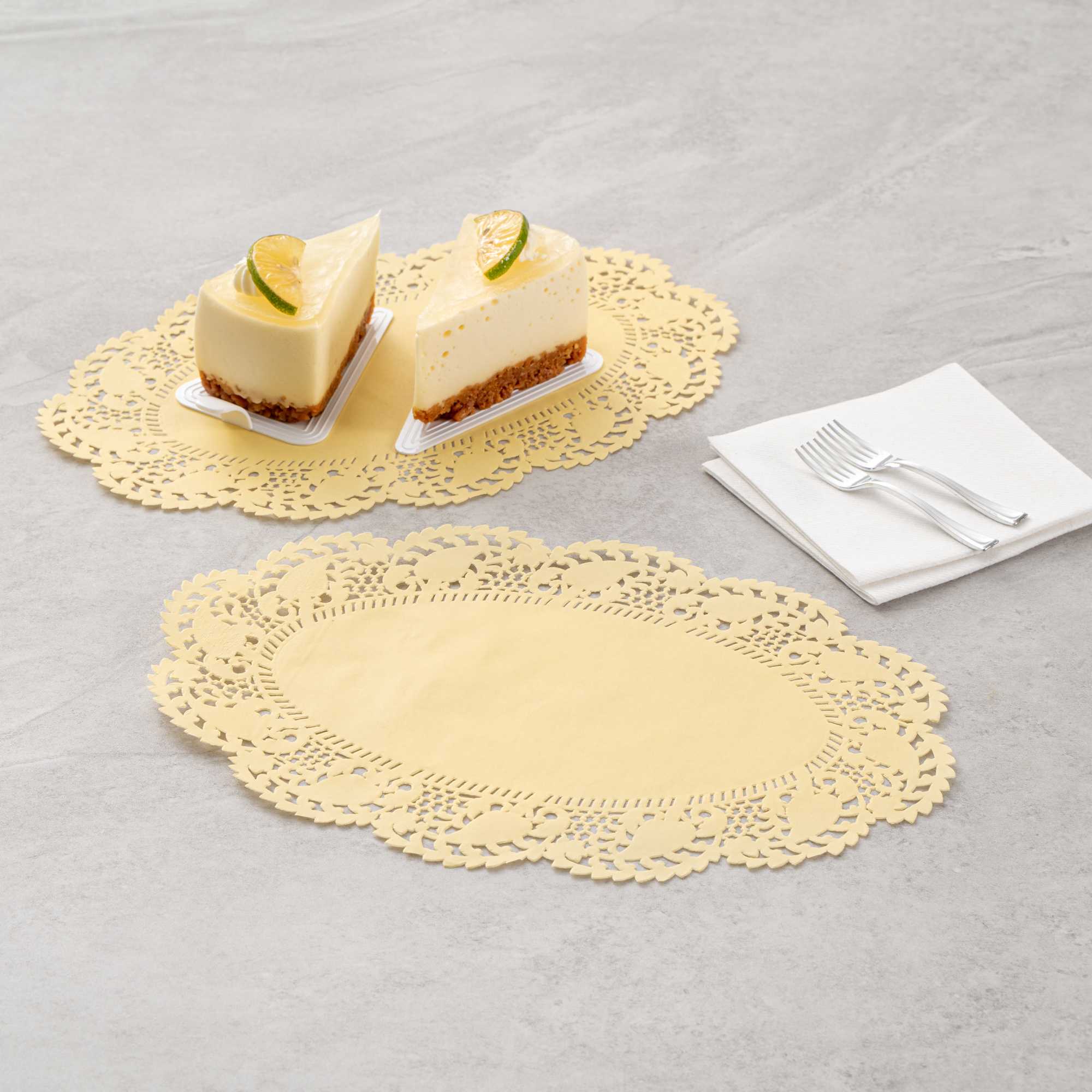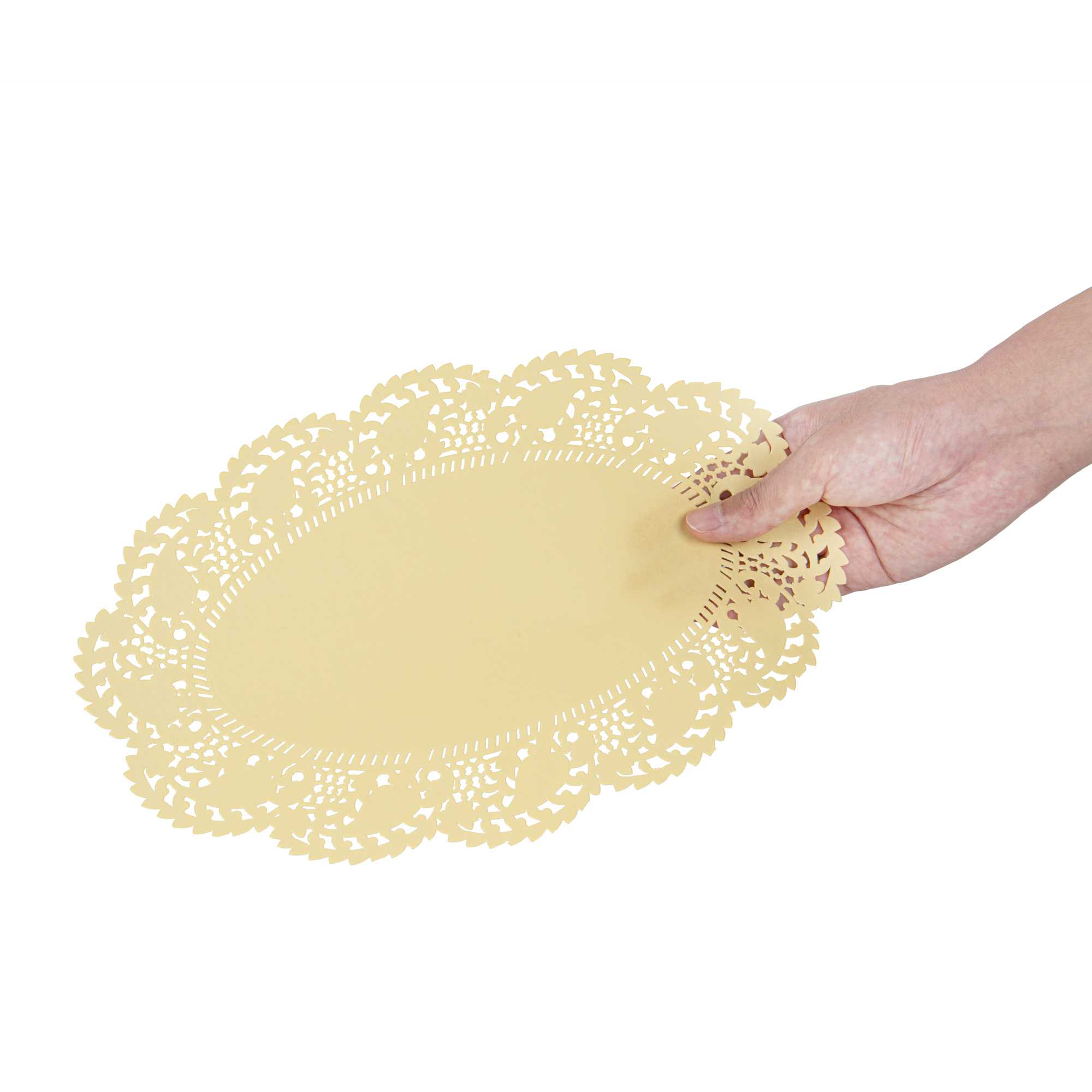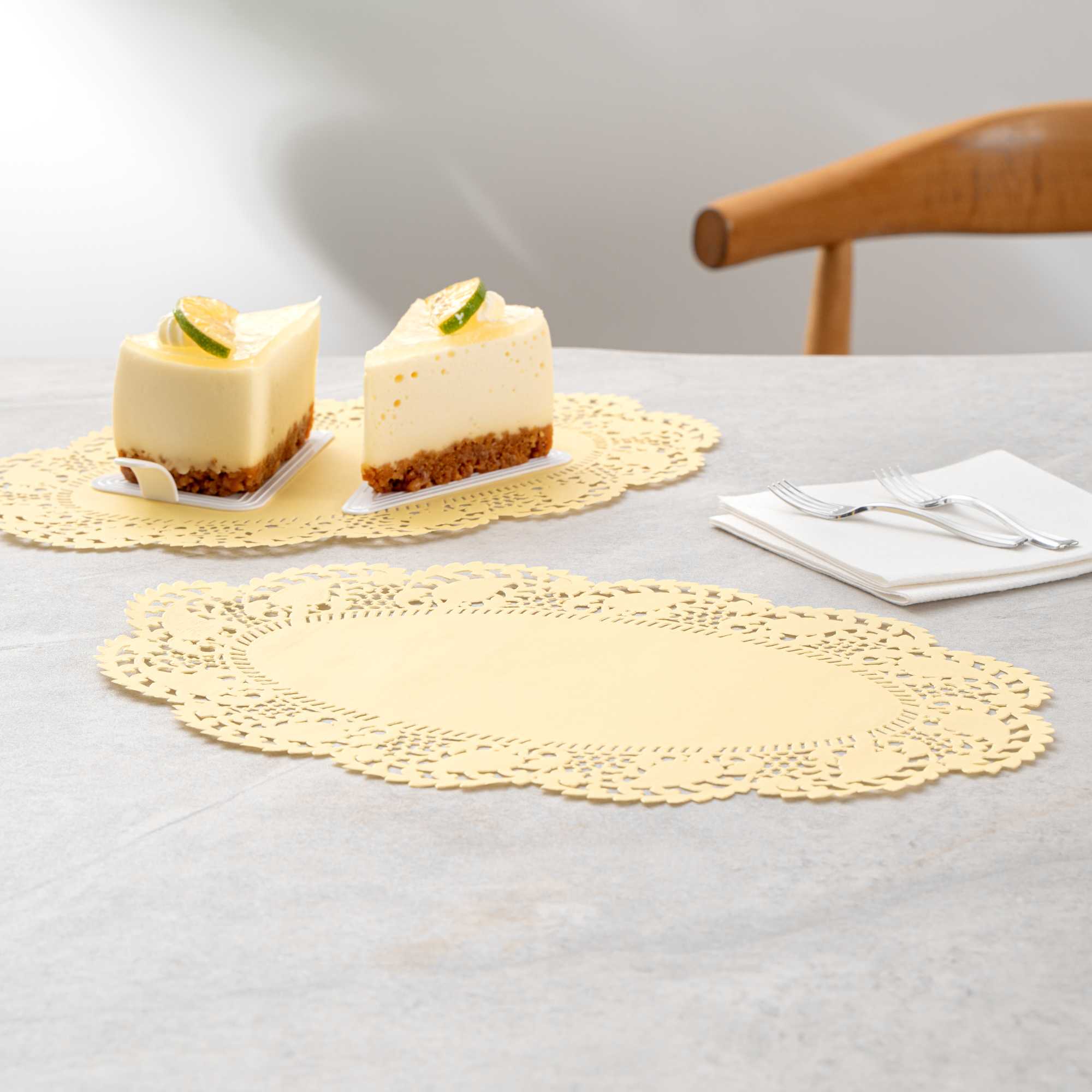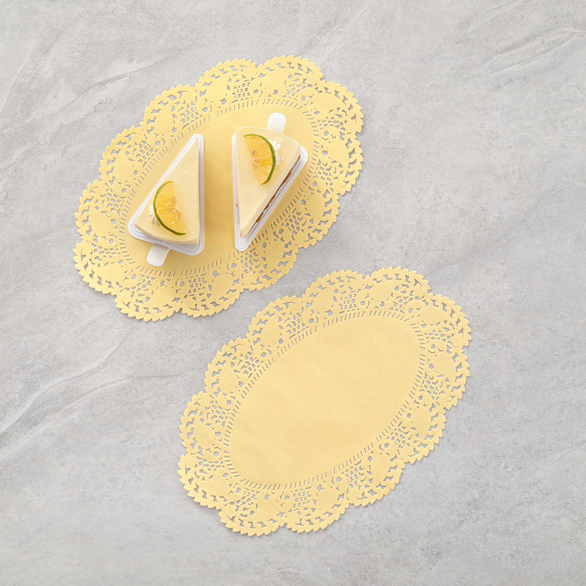OVAL YELLOW PAPER DOILIES - LACE - 12 1/2" X 8 1/2" - 100 COUNT BOX