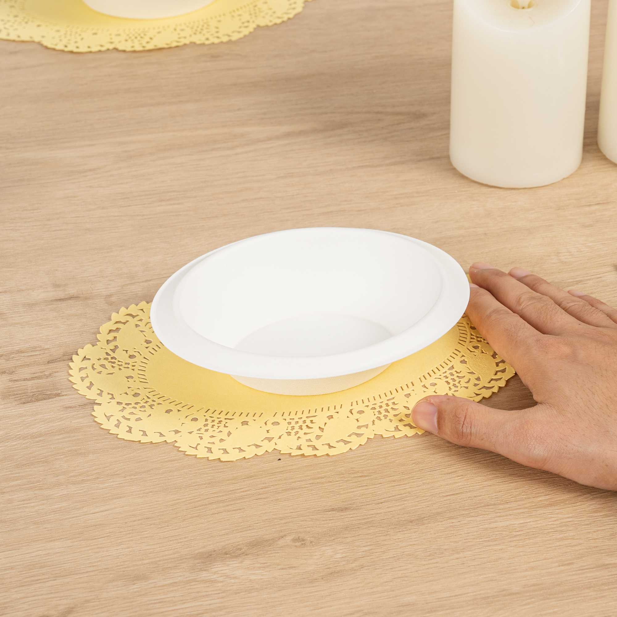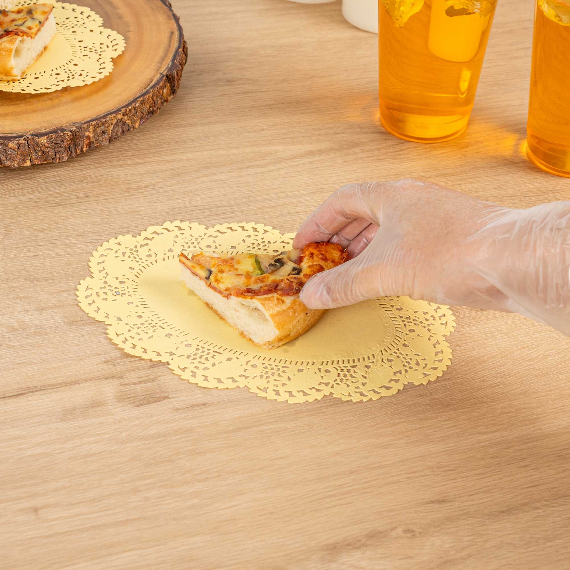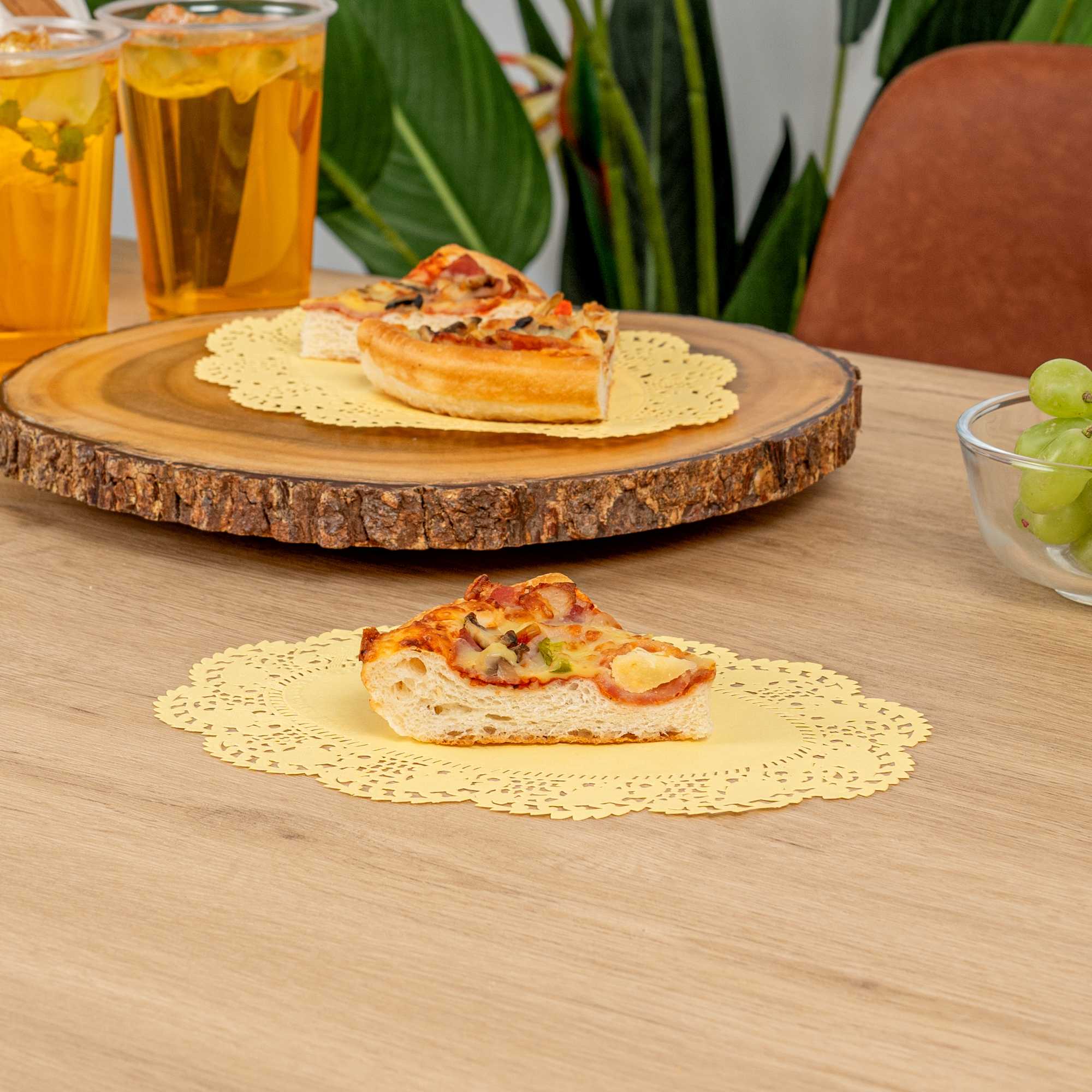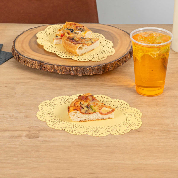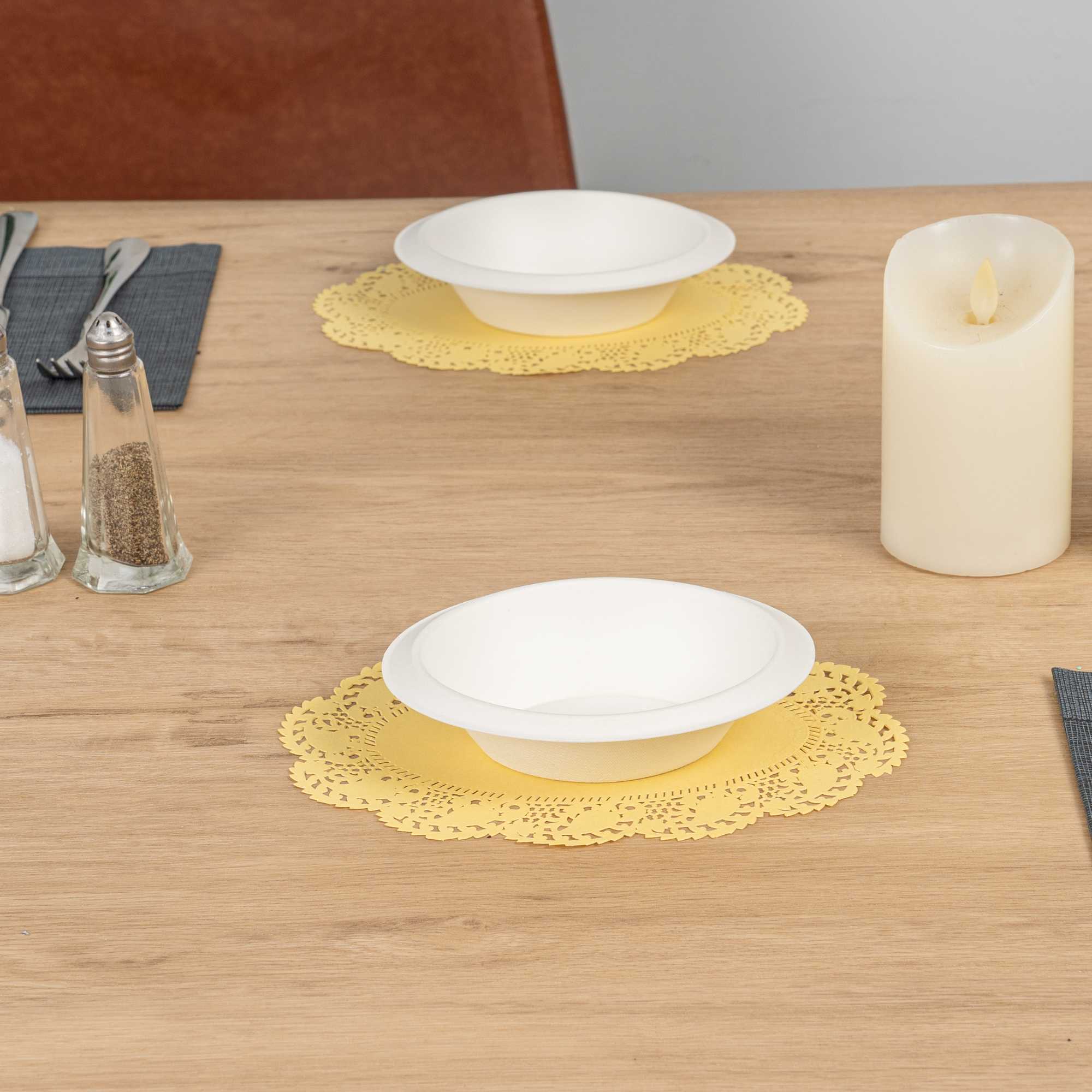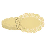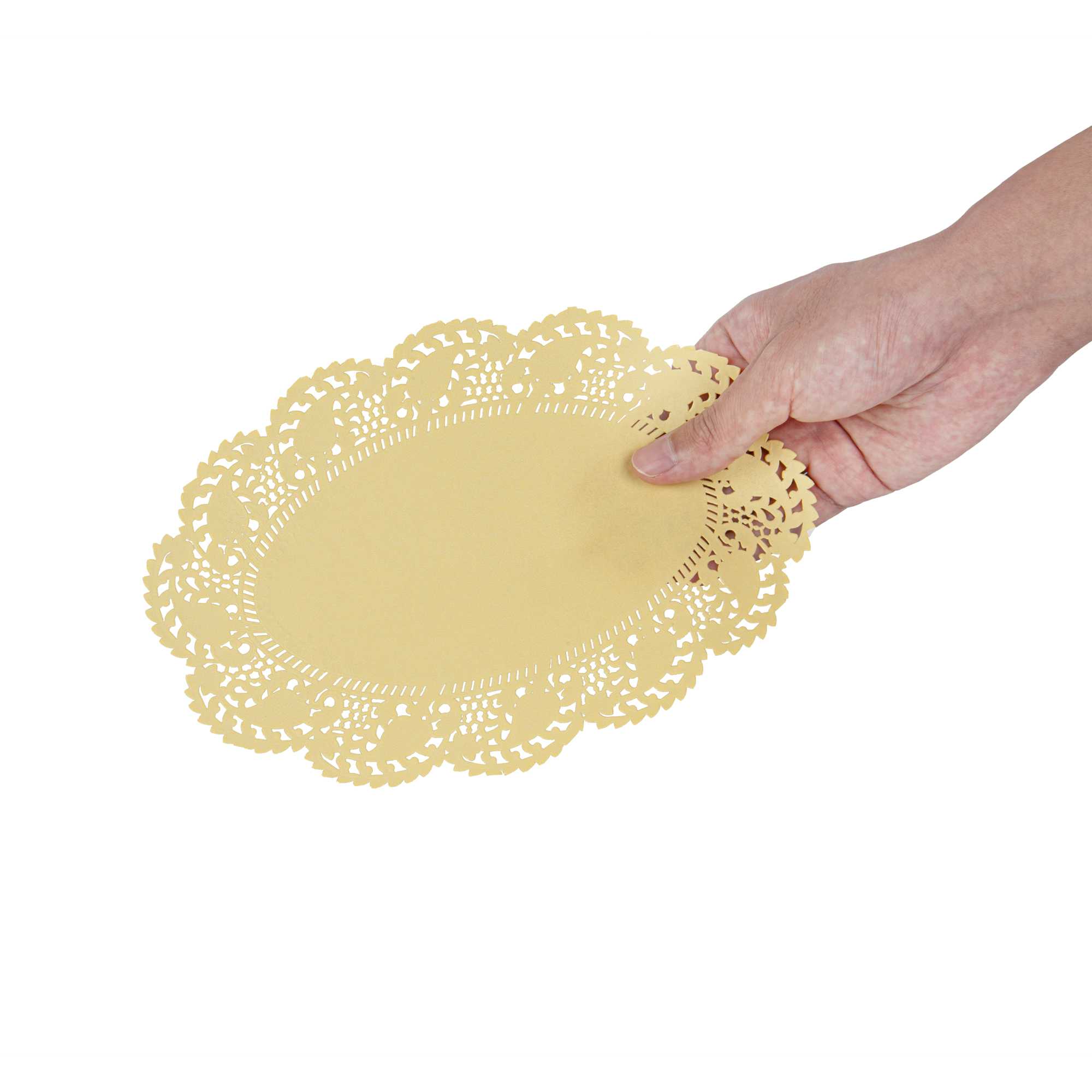 Elevate your dessert presentations with our Pastry Tek Oval Yellow Paper Doilies. Crafted from high-quality paper, these lace doilies provide durability while displaying desserts at bakeries or catered luncheons without tearing or losing their structural integrity. The intricate lace-like details of these paper doilies enhance the visual appeal of food presentations while serving as functional barriers, protecting surfaces, and absorbing moisture. Versatile and stylish, these yellow colored paper doilies complement a wide range of table settings and themes, making them an ideal choice for various events and occasions. Conveniently disposable, these table doilies eradicate the hassle of post-event cleanup, offering a time-saving solution for busy events and food establishments. Perfectly sized, these small doilies measure 9 inches in length by 6.5 inches in width, making them ideal for cupcakes, petit fours, macarons, and other small treats. Sold in a 4,000 count box.