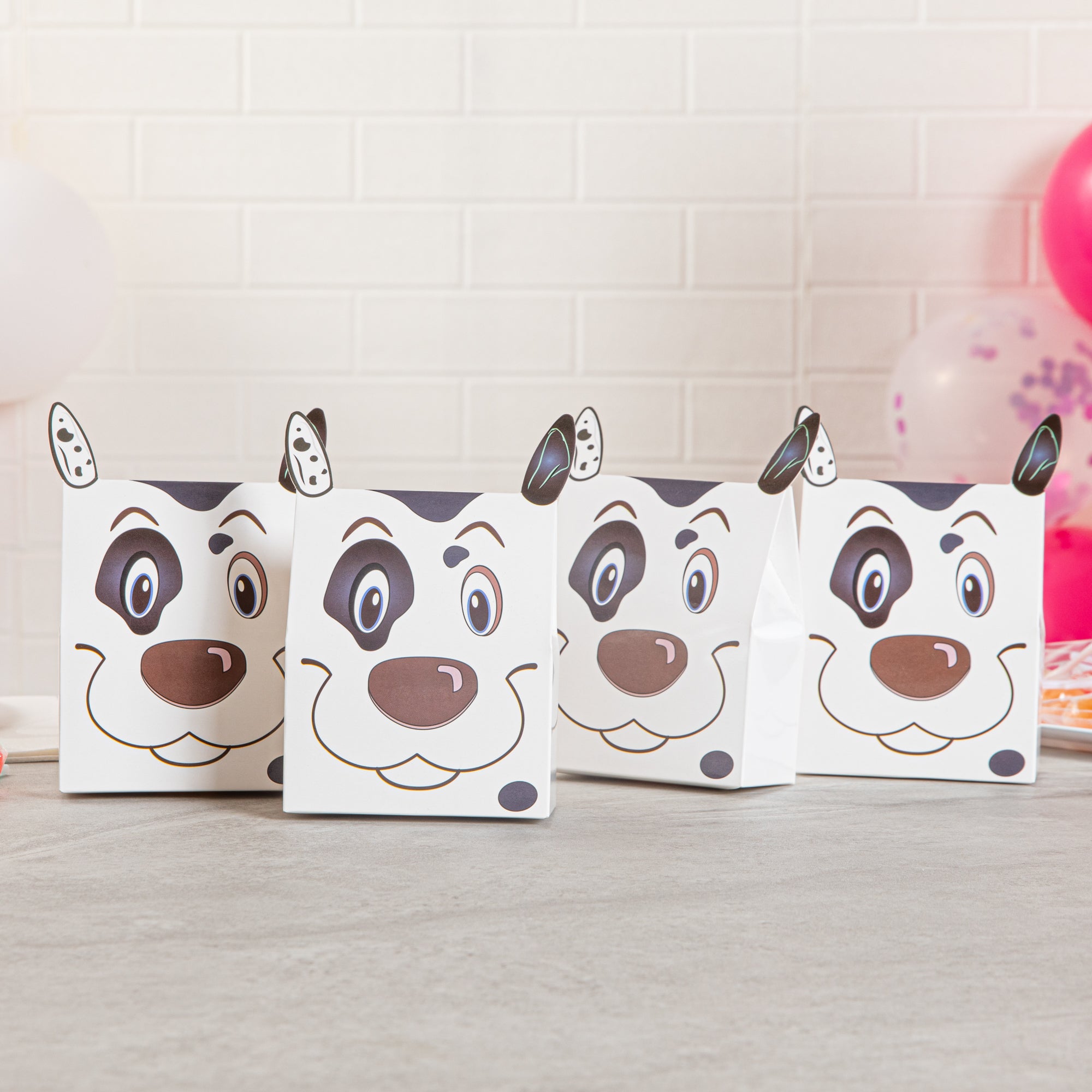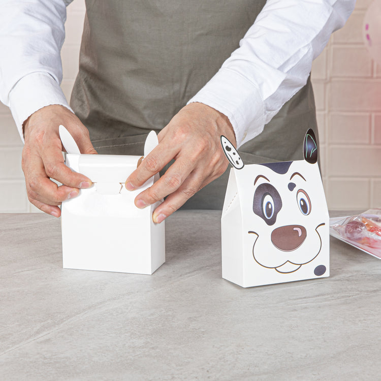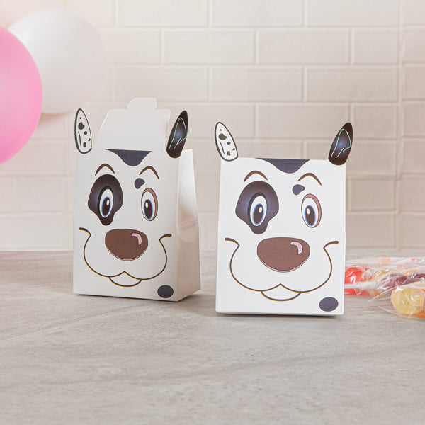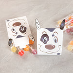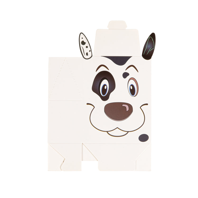 Give away fun party favors with our Pastry Tek Happy Spotted Dog Candy and Gift Boxes. Constructed from premium paper, these biodegradable goodie boxes are sturdy for holding bite-sized treats. Designed with the cheery face and floppy ears of a Dalmatian, these commercially compostable candy favor boxes will be the highlight of your special event. Equipped with a built-in tab lock closure, these recyclable party favors securely contain your candies in transit. These favor containers are shipped flat for space-saving storage. To make the cleaning process easy, these party boxes are disposable. Each party favor container measures 4 inches in length by 2 inches in width by 5 inches in height. Shipped in a 100 count box. This item will only degrade outside of the traditional solid waste stream.