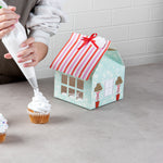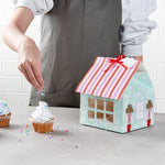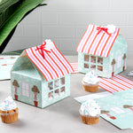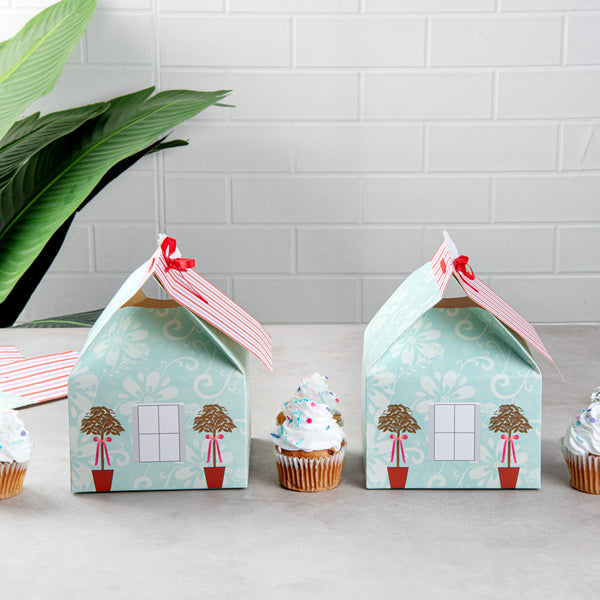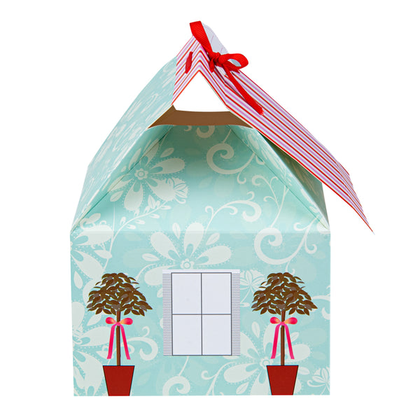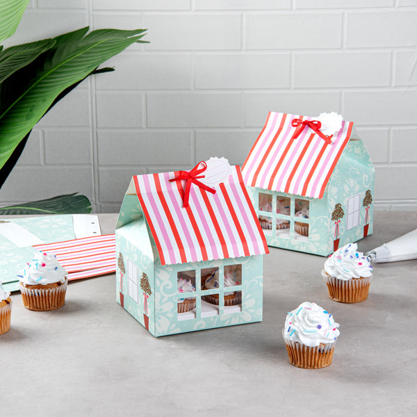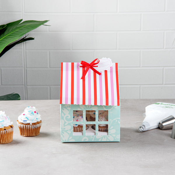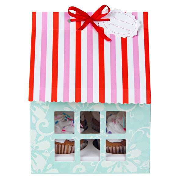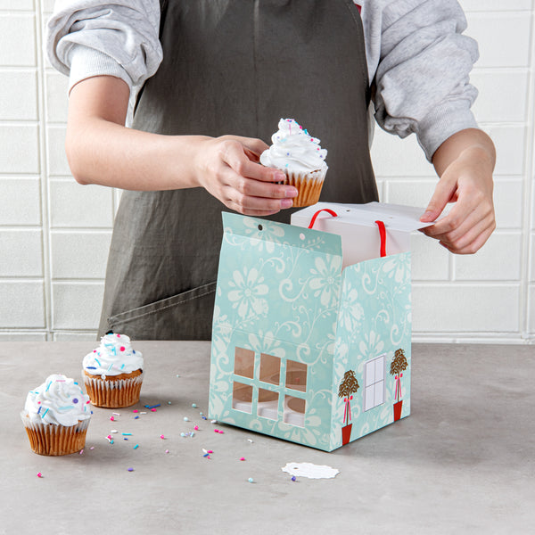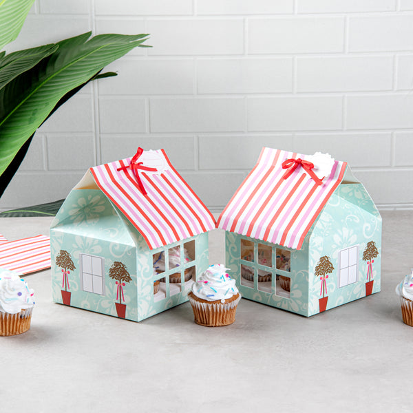 PINK AND BLUE PAPER PETITE HOUSE CUPCAKE WINDOW GIFT BOX - FITS 4