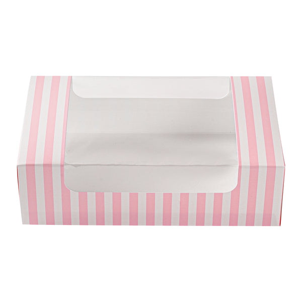 PINK AND WHITE STRIPE PAPER PASTRY / CAKE BOX - WITH WINDOW