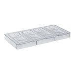 Elevate your confectionery creations with our Pastry Tek Polycarbonate Chocolate Bar Molds. These durable candy molds feature 4 compartments, allowing you to efficiently produce multiple chocolate bars at once. The rectangular shape of these polycarbonate chocolate molds gives a classic and professional look to your candies, making them perfect for creating gourmet chocolate bars. With a clear finish, these chocolate molds allow for easy product visibility, ensuring your creations meet your quality standards before removal. Crafted from durable polycarbonate, these chocolate bar molds won't crack easily and are ideal for long-lasting use. These candy bar molds are freezer-safe and perfect for creating frozen treats. Dishwasher-safe, these clear molds simplify your cleanup. These clear chocolate molds measure 10.75 inches in length by 5.25 inches in width with each cavity measuring 4.6 inches in length by 1.9 inches in width by 0.3 inches in depth. Sold in a 10 count box.