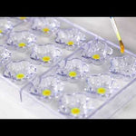 Add a charming touch to chocolates or candies using our Pastry Tek Polycarbonate Flower Candy / Chocolate Molds. These food grade chocolate molds feature 18-built in compartments that create molded chocolate flowers to bring a lovely and memorable touch to your desserts. With a clear finish, these flower molds offer a full view of the personalized touches you add to the surface of each flower cavity. These clear flower chocolate molds make it easy for staff members to know when candies are completely set and ready to remove from the mold. Constructed from high-quality polycarbonate, these dishwasher-safe chocolate molds feature a rigid base that allows you to fill each cavity to the top without worrying about the mold warping or bending. These flower candy molds can be conveniently stored in commercial fridges or freezers to ensure that your tempered chocolates quickly and completely harden. Each flower mold measures 1.4 inches in diameter by 0.5 inches in depth. These freezer-safe flower molds have a total measurement of 10.8 inches long by 5.3 inches wide. Sold in a 10 count box.