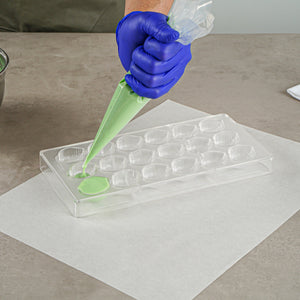 Add a touch of oceanic charm to your confections with our Pastry Tek Polycarbonate Sea Shell Candy / Chocolate Molds. Designed with 18 compartments, these rectangle chocolate molds allow you to craft intricate and realistic sea shell-shaped candies or chocolates with ease. The clear finish of these candy molds provides a sleek appearance and enables you to effortlessly monitor the molding process. These polycarbonate chocolate molds are freezer-safe and dishwasher-safe, making them a versatile and convenient addition to any bakery, restaurant, or bistro. Made from durable polycarbonate material, these clear molds are designed to withstand repeated use without cracking, ensuring longevity in your commercial kitchen. These gummy molds are perfect for creating unique and eye-catching confections that will enthrall your customers. Each compartment in these candy molds measures 1.3 inches in length by 1.7 inches in width by 0.8 inches in height. Measuring 10.75 inches in length by 5.25 inches in width, these candy bar molds are compact enough to fit comfortably in your workspace while still producing a significant amount of product. Sold in a 10 count box.