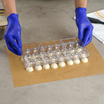 Score the sweetest victory with our Pastry Tek Polycarbonate Soccer Ball Candy / Chocolate Mold. Crafted with 24 compartments, this chocolate mold is perfect for creating bite-sized soccer ball chocolates or candies, making them a fantastic addition for sports-themed parties, events, or bakeries. Made from durable polycarbonate, this candy bar mold is freezer-safe and dishwasher-safe, offering a convenient cleanup process. The clear finish of this polycarbonate chocolate mold allows for easy monitoring of your sweet treats while they set, saving you the hassle of guesswork. This candy mold is crafted from durable polycarbonate, ensuring it can withstand the hustle and bustle of busy commercial kitchens. Measuring 10.75 inches in length by 5.25 inches in width, this clear mold is compact and easy to store, making them a space-efficient choice for your kitchen. Each candy mold's cavities measure 1.2 inches in diameter by 0.6 inches in depth. Sold in a 1 count box.