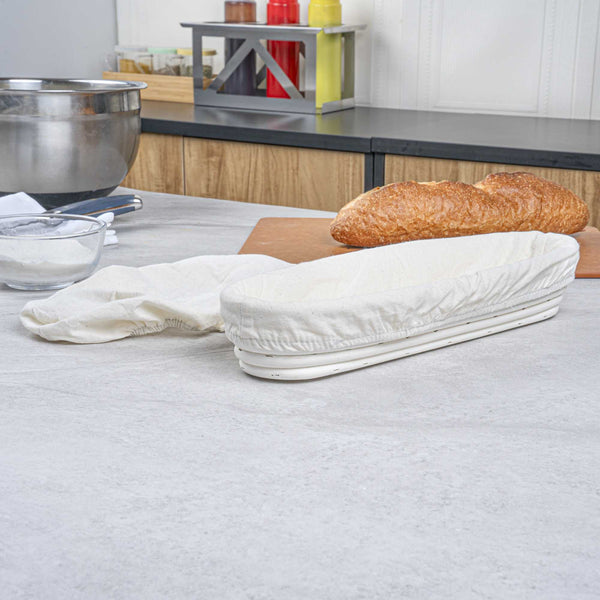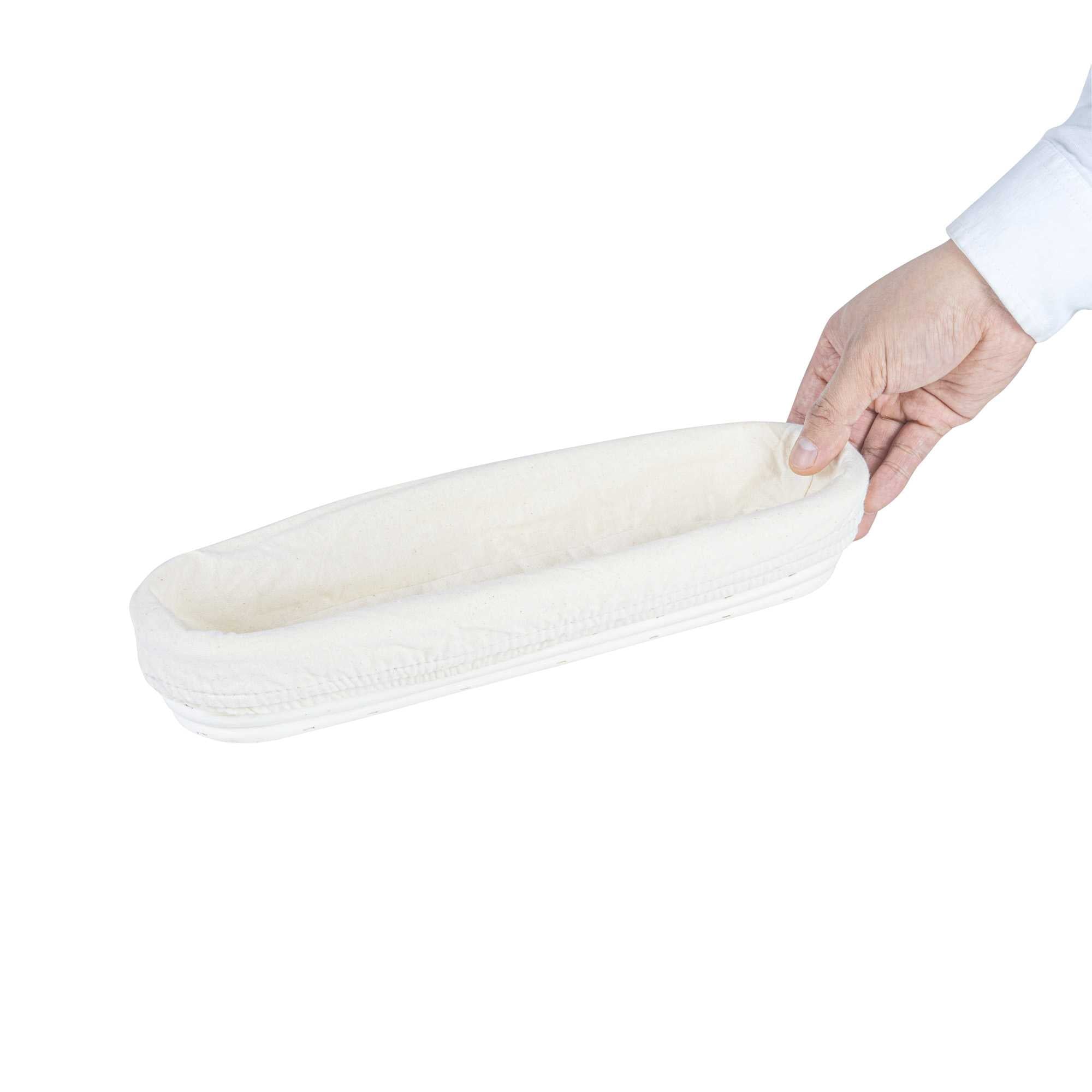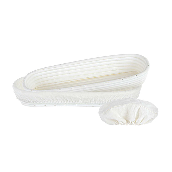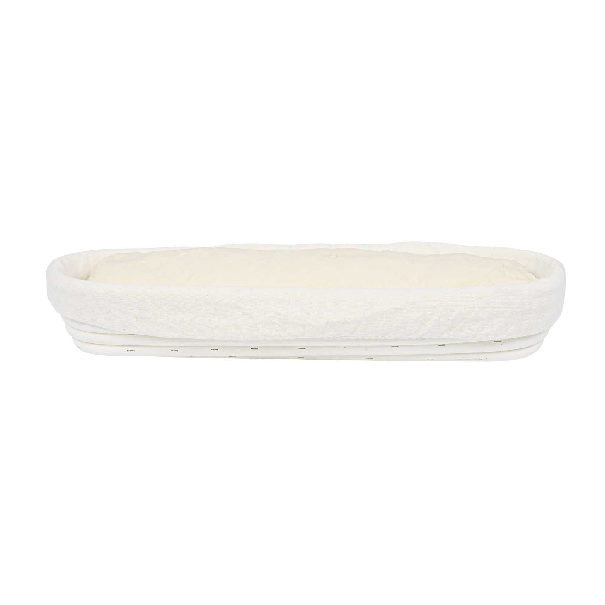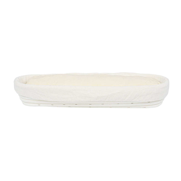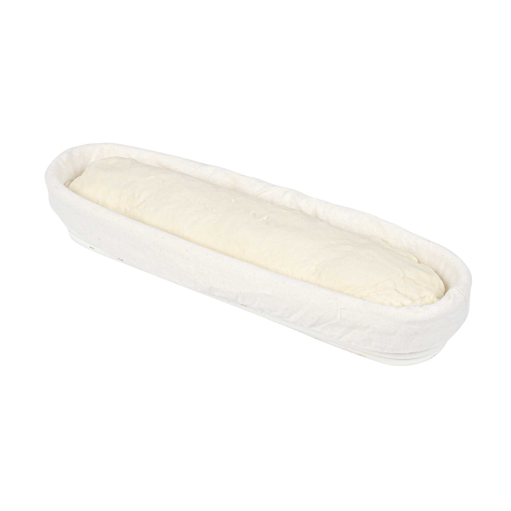Effortlessly elevate your baking processes with this Pastry Tek Rattan Long Oval Natural Banneton Proofing Basket. This basket is meticulously designed to help you perfect artisan loaves with its 13.39" length and 3.94" width. Crafted from natural rattan, this bread proofing basket aids in healthy fermentation, allowing bakers to achieve the perfect rise every time. The included cotton liners enable easy dough transfer to baking sheets, safeguarding the shape and integrity of your loaves. This banneton bread basket is cold food friendly, making it an ideal choice for eco-conscious bakeries. Simplify cleanup with a quick tap or rinse under water, then place it over a warm oven to dry. Experience improved texture and taste in every loaf you prepare. Sold in a 1 count box.